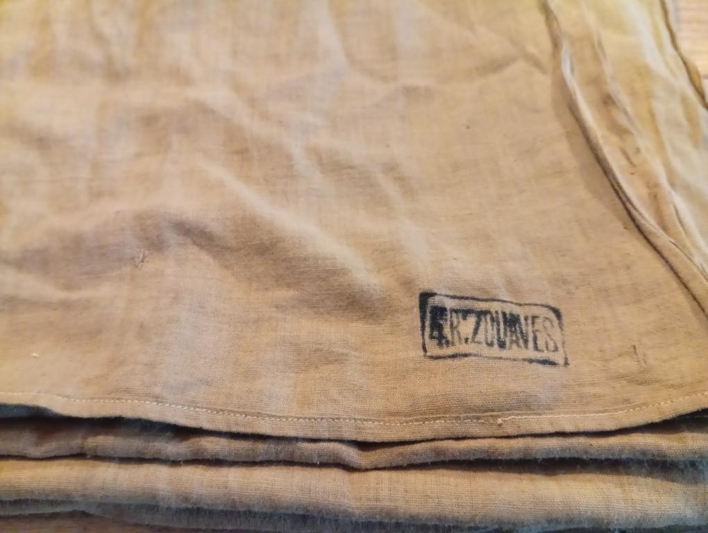 Bonjour à la vente cette belle chèche armée d'Afrique bien tamponnée du 4ème Régiment de Zouave pleine longueur environ 2m40 largeur 78 cms