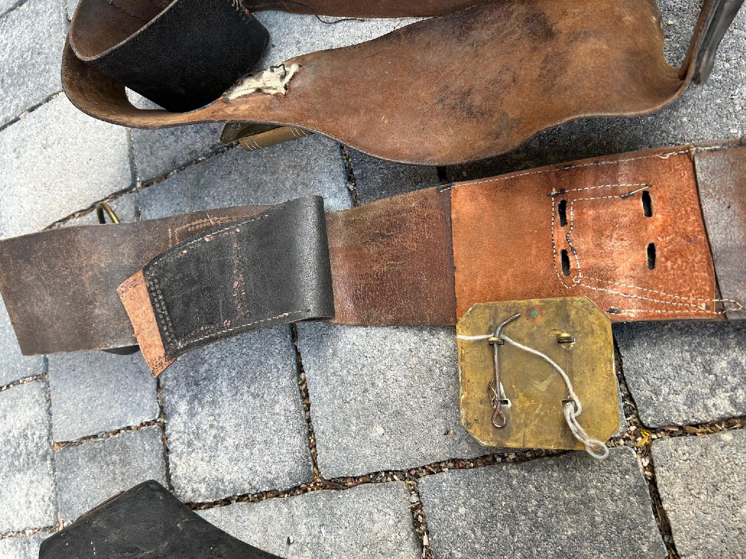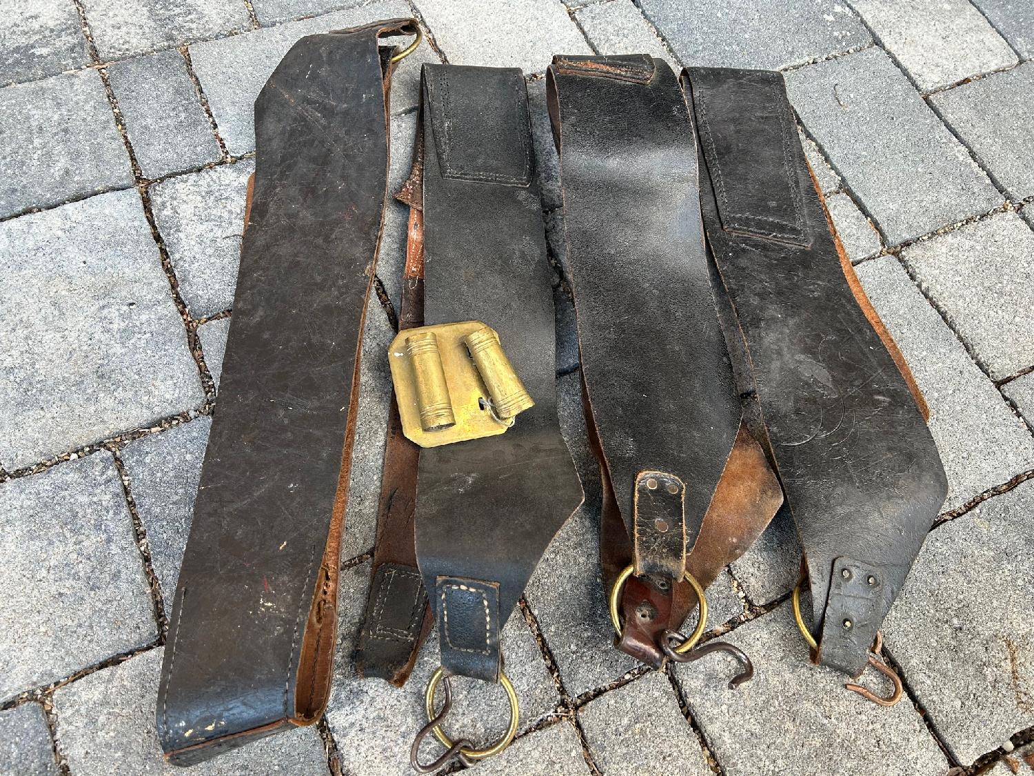 4 baudriers porte baguette Pompiers ou militaire dans leur jus. A re conditionner, 1 baguette encore présente. Lot indissociable. Frais de port en supplément pour la France métro 10 euros.