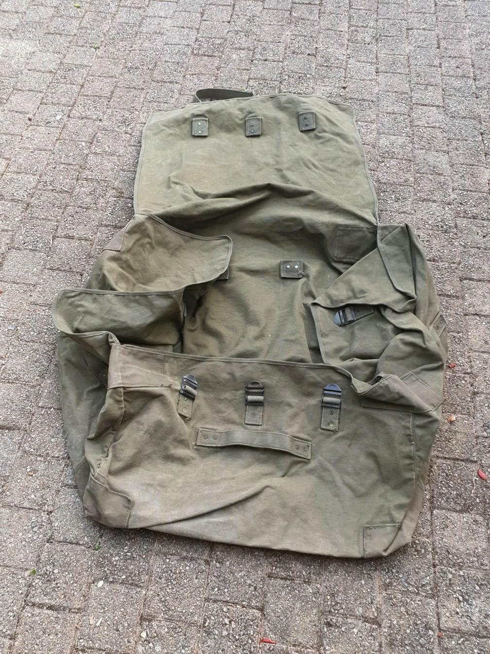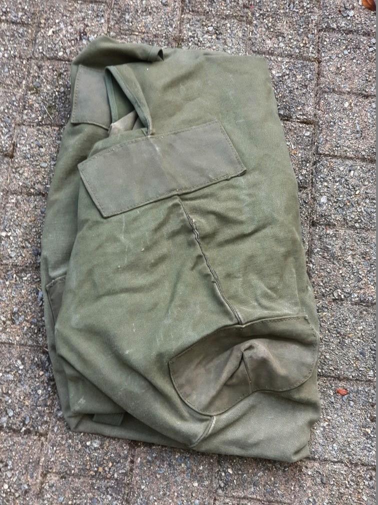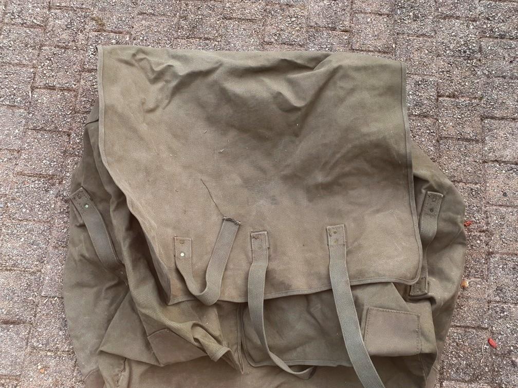 Grand sac médical US ARMY(MD Blanket Set Large) en forte toile OD. Toutes les sangles sont présentes, marquages au pochoir US Army Medical Department Blanket Set Large et logo médical US.