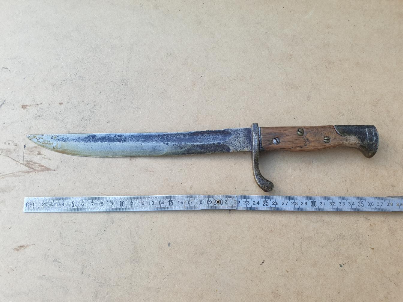 Couteau de tranchée allemand (ou Français) sans fourreau, fait à partir d'une baïonnette allemande Mle 1898/05 type dents de scie WW1.