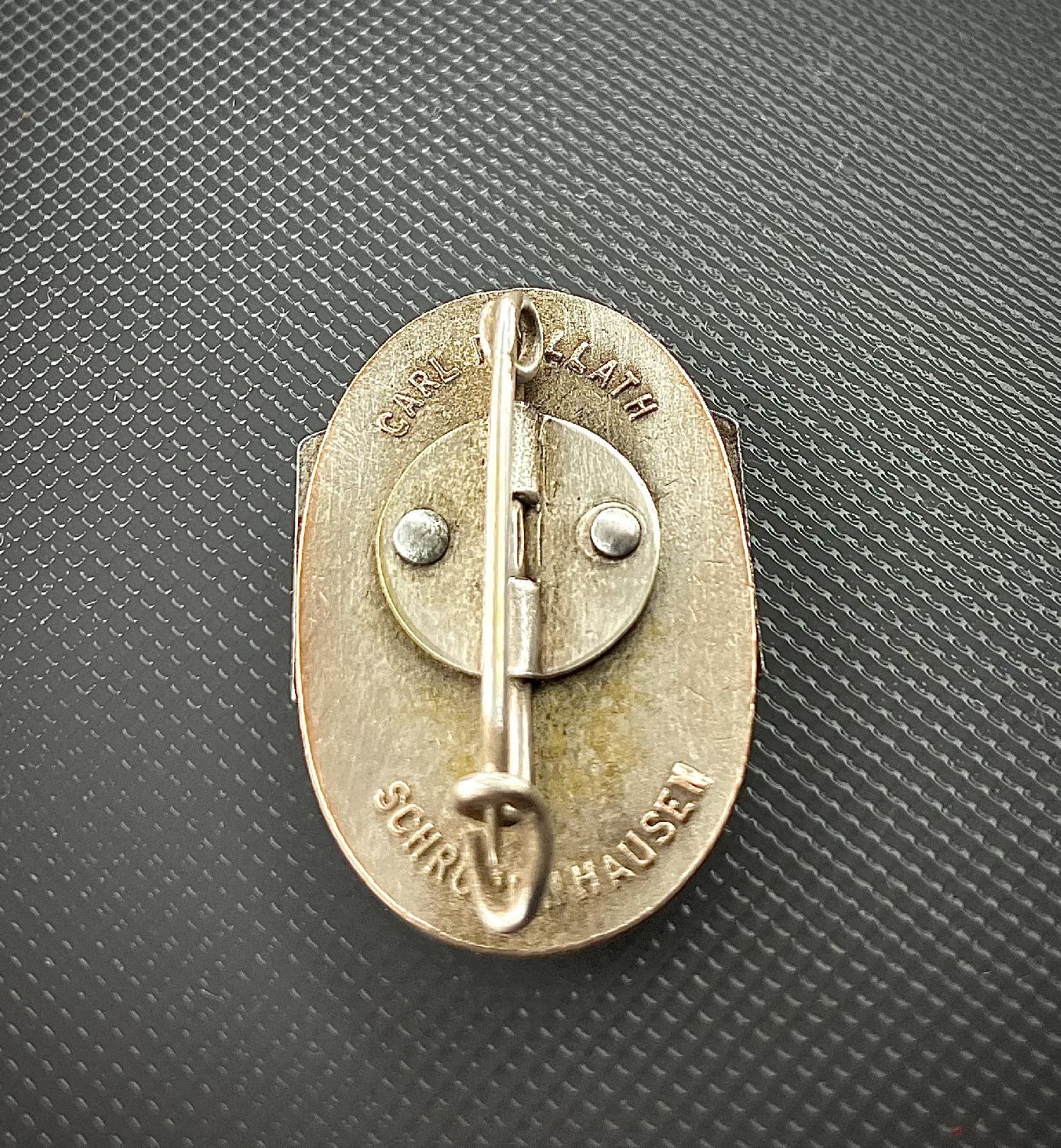 Insigne du «Reichsbund Deutscher Kleingartner» complet, en TBE - Émail intact avec belle couleur et inscriptions bien lisibles (sans manque) - Épingle au dos d’origine et non déformée - Marquages au dos «Carl Poellath - SCHROBENHAUSEN»