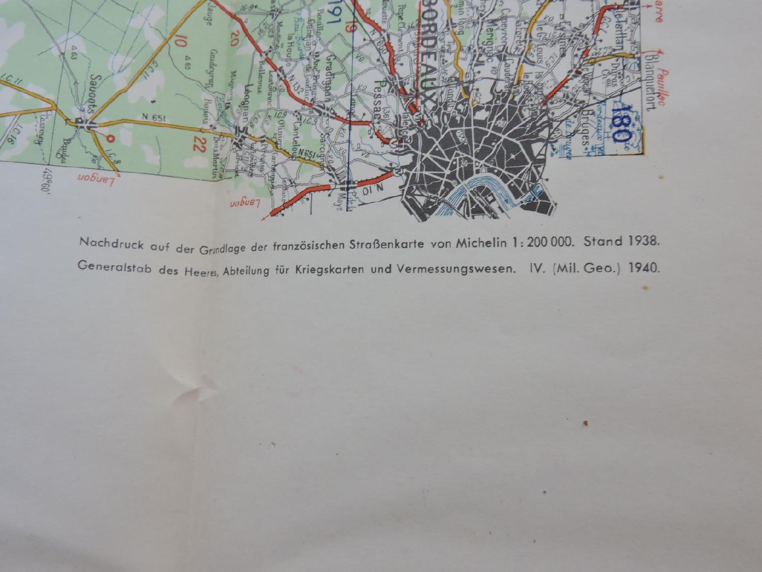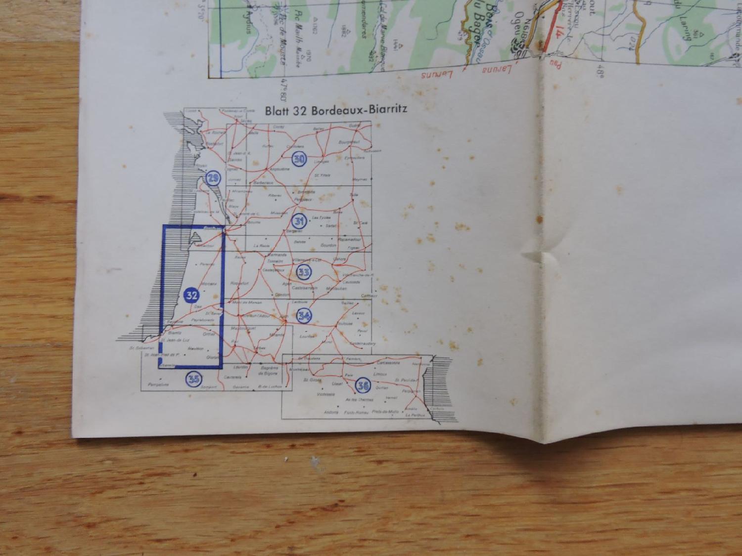 Carte routière Bordeaux-Biarritz à l'échelle 1/200000 et datée 1940. Édition spéciale réservée à un usage officiel.