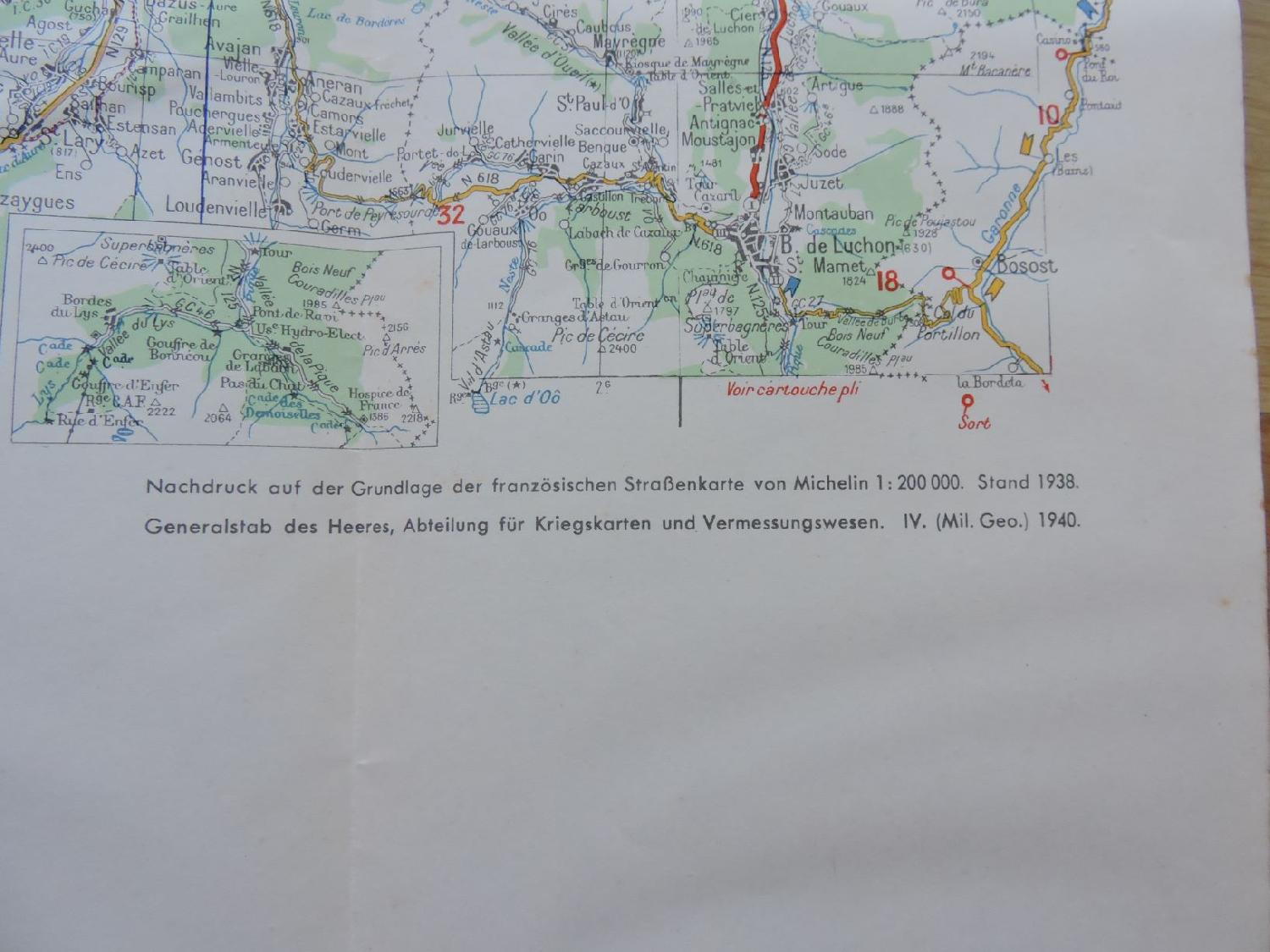 Carte routière Biarritz- Luchon à l'échelle 1/200000 et datée 1940. Édition spéciale réservée à un usage officiel.
