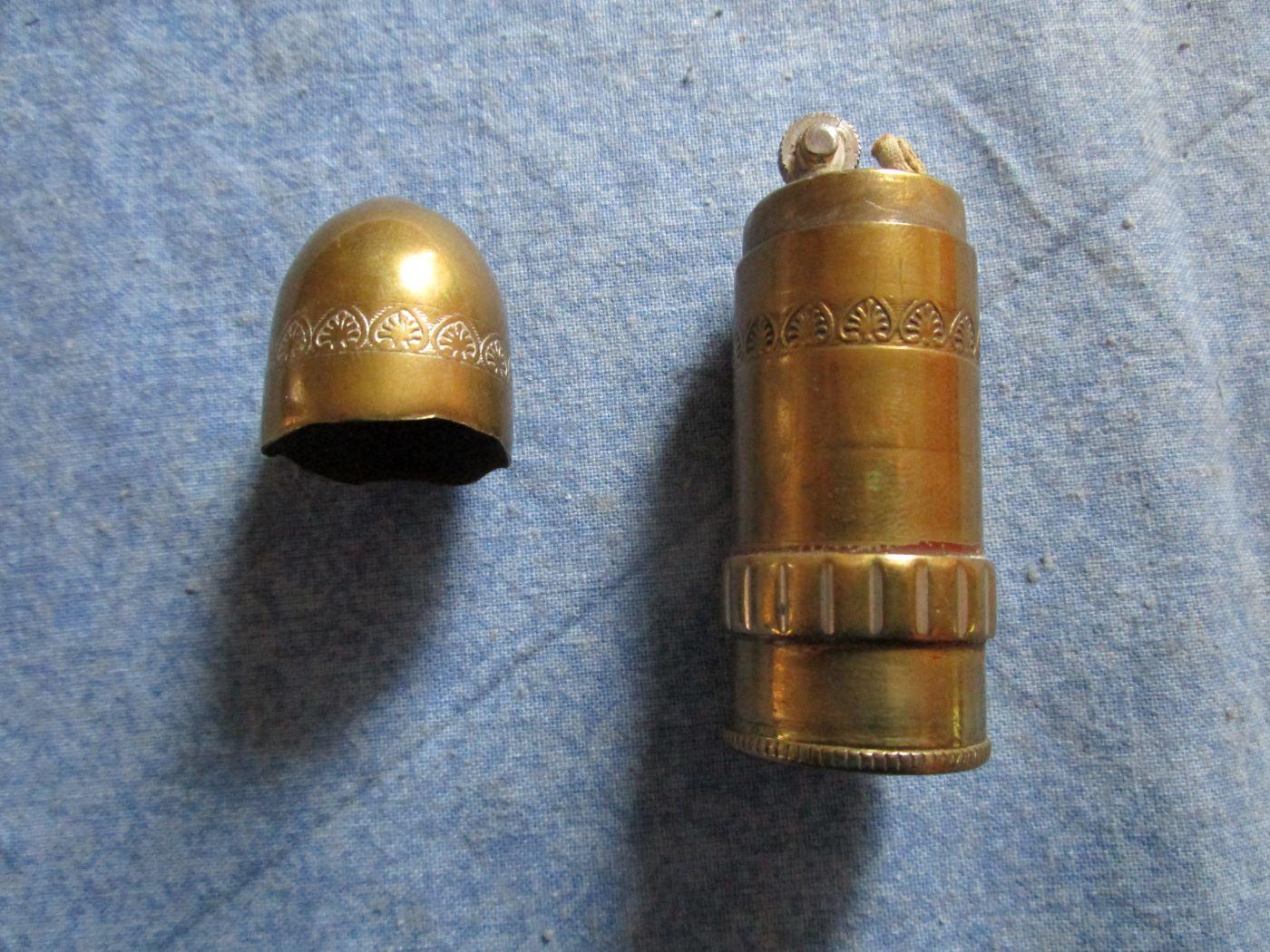 Briquet en forme d'obus, hauteur 7 cm. Complet. Prévoir 5.25 euros en colissimo ou 4.30 euros par mondial relay.