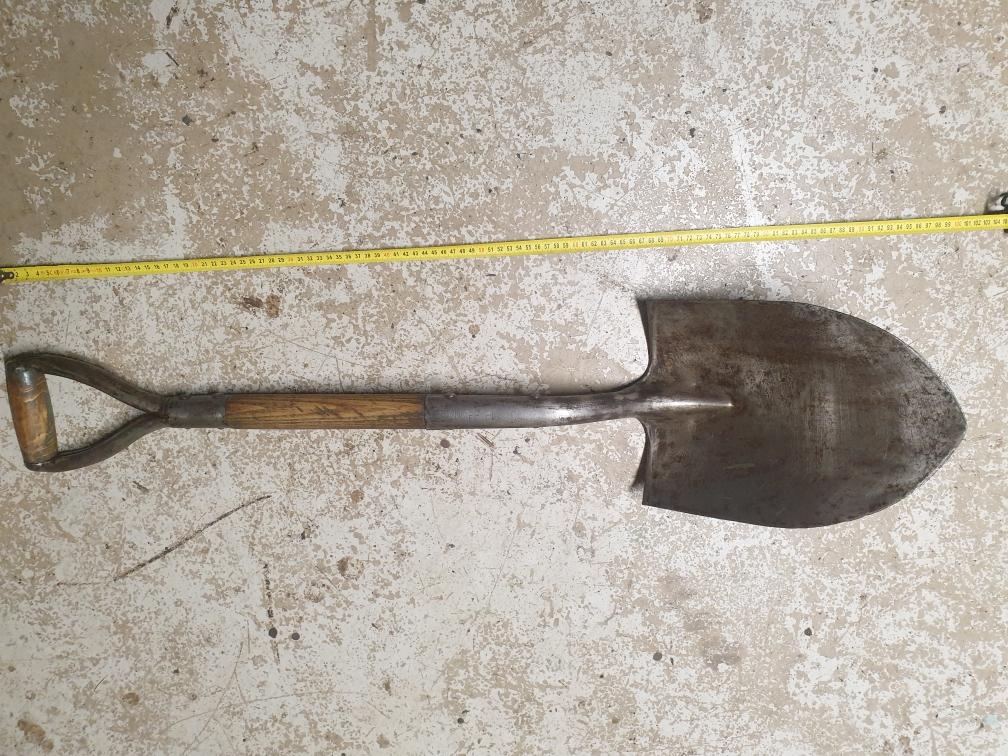 Pelle de parc Jeep, GMC, fabrication Française, manche gravé « Armée Française ».