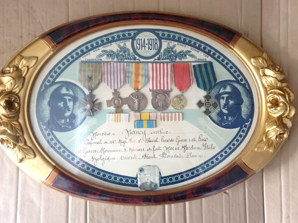 Présence entre autres, des rappels de décorations des médailles commémoratives italienne 1915-1918 et d'orient 1926 ainsi que du portrait en miniature du soldat.