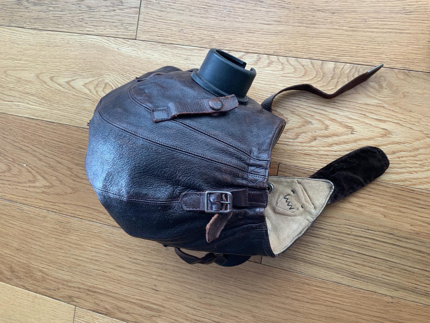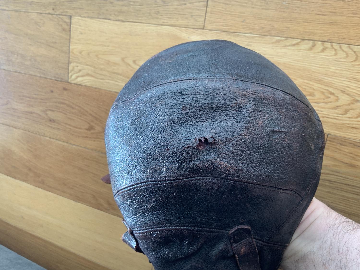 Bonnet de pilote de la RAF, très bon état, juste de petits dégâts à signaler sur la tête (voir poto). Reste de marqages AM et nom du pilote. Model utilisé par les pilotes en 1943/1944, et très prisé des pilotes US pour son confort