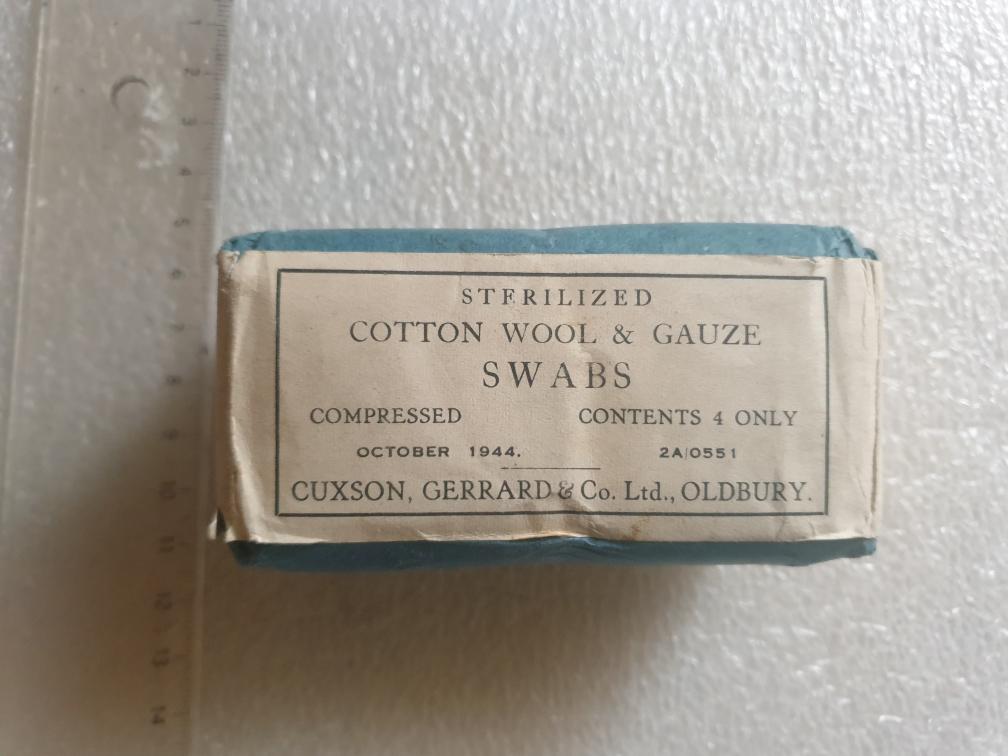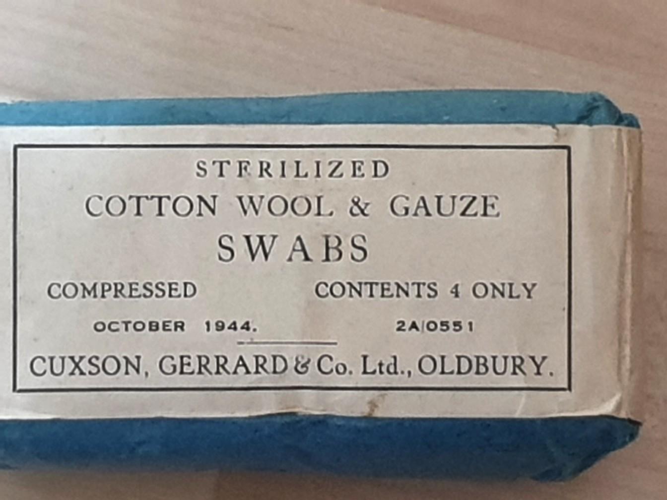 Compresse stérilisée armée anglaise fabricant CUXON, GERRARD & Co. Ltd. à Olbury, datée octobre 1944.