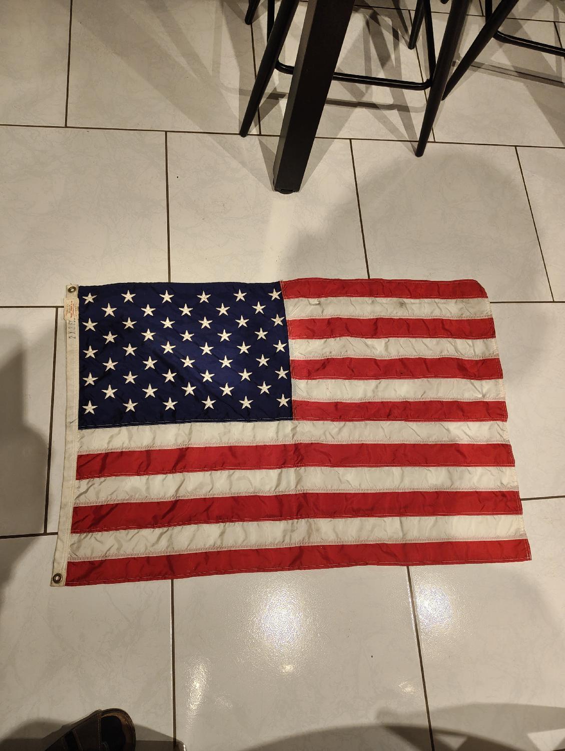 Drapeau us 50 étoiles nylon dimensions 93x64 étoiles brodées très bon état port 6 euros pour la France mondial Relay paiement PayPal entre proches ou chèque