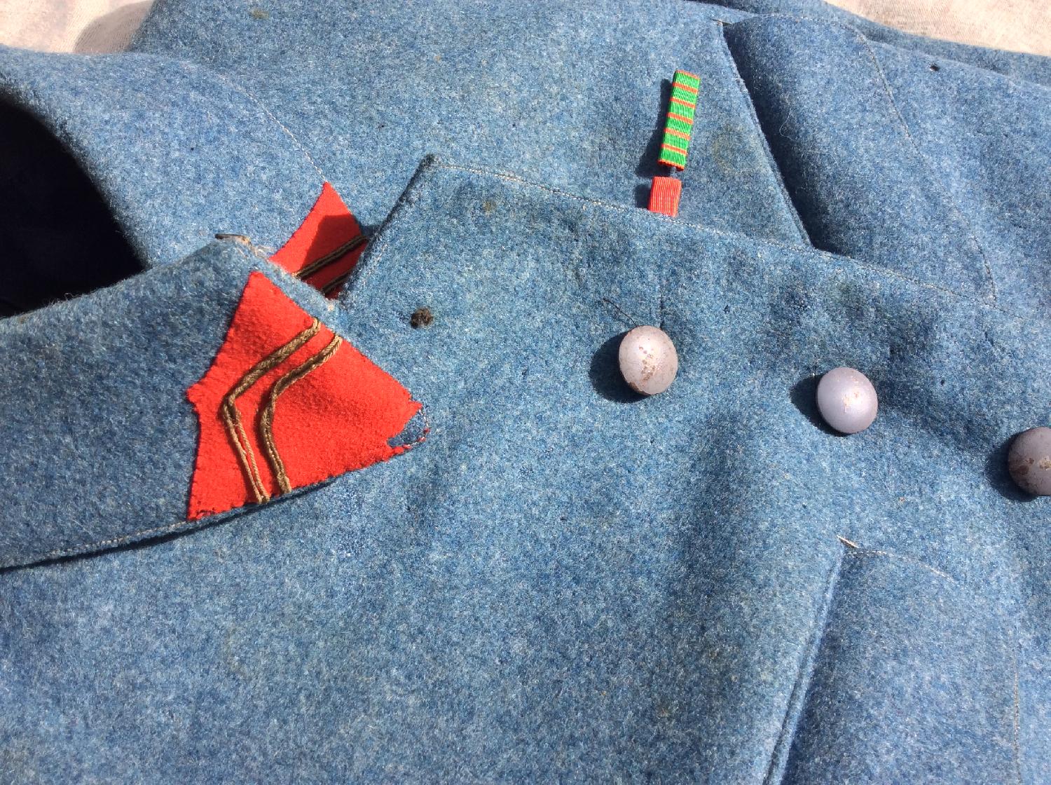 Je vends cette très belle veste qui est authentique et pas touchée, il manque deux boutons et je n’ai pas vu de marquage.