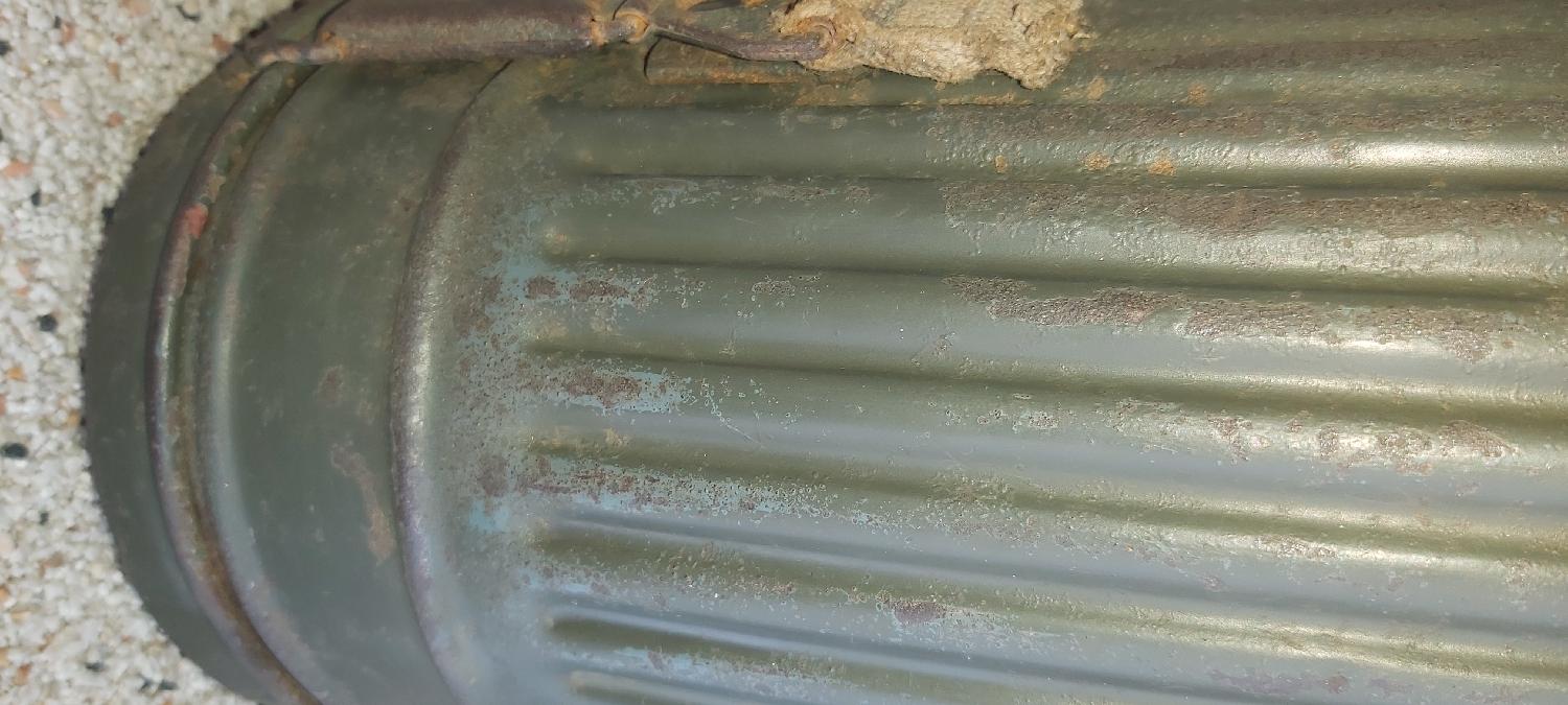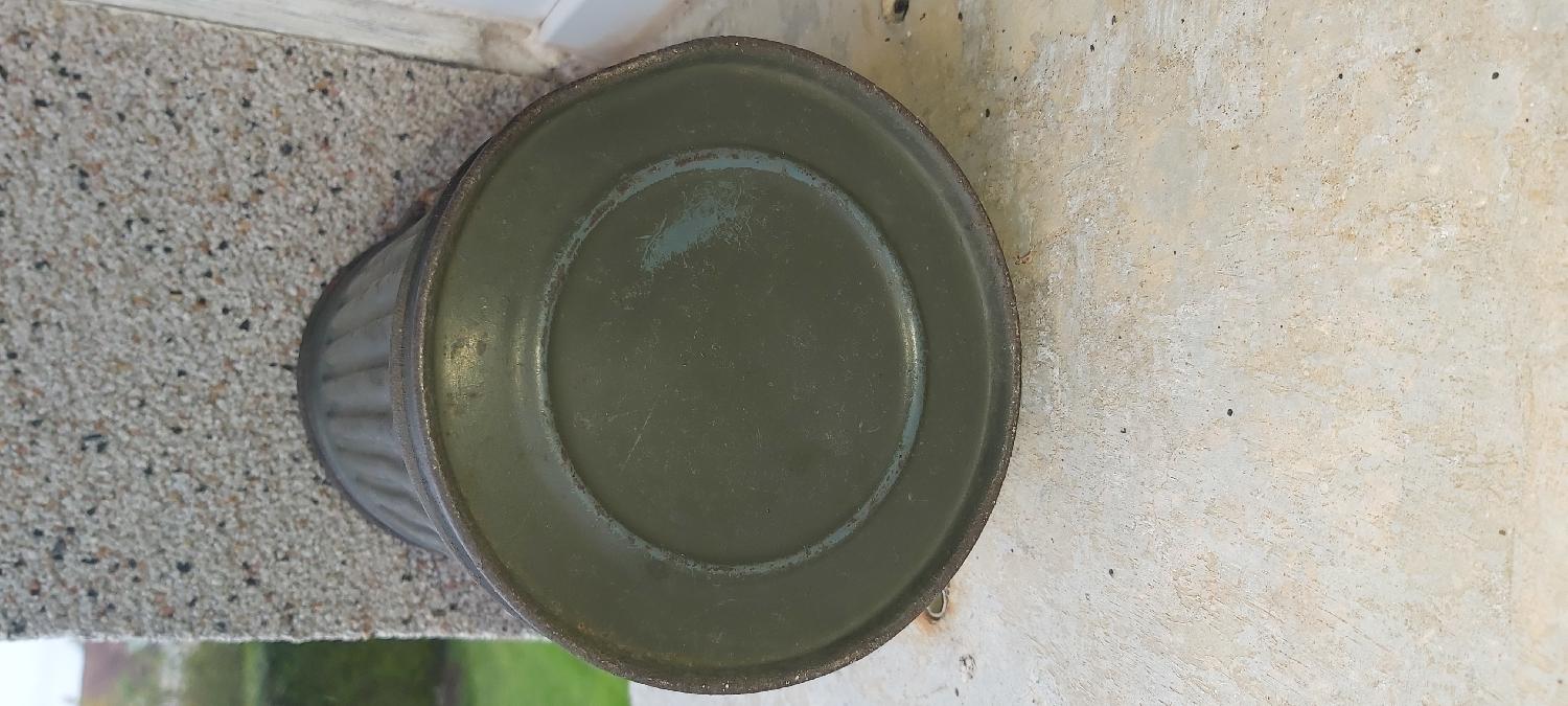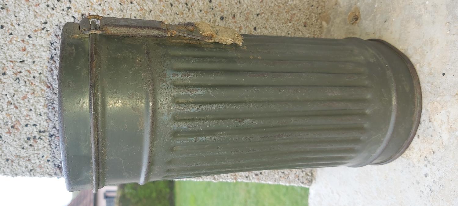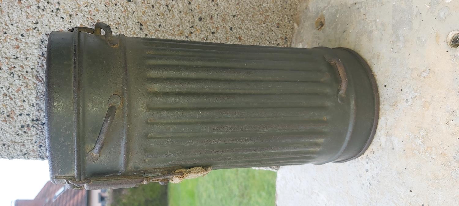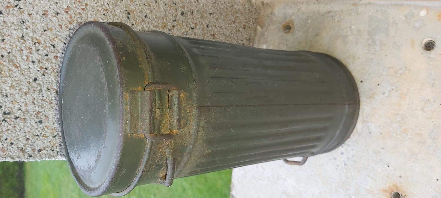voici une boîte masque a gaz la peinture à +90%.trace sous la peinture en gris bleu puis repasser en felgrau.interieur très propre et daté 1939.