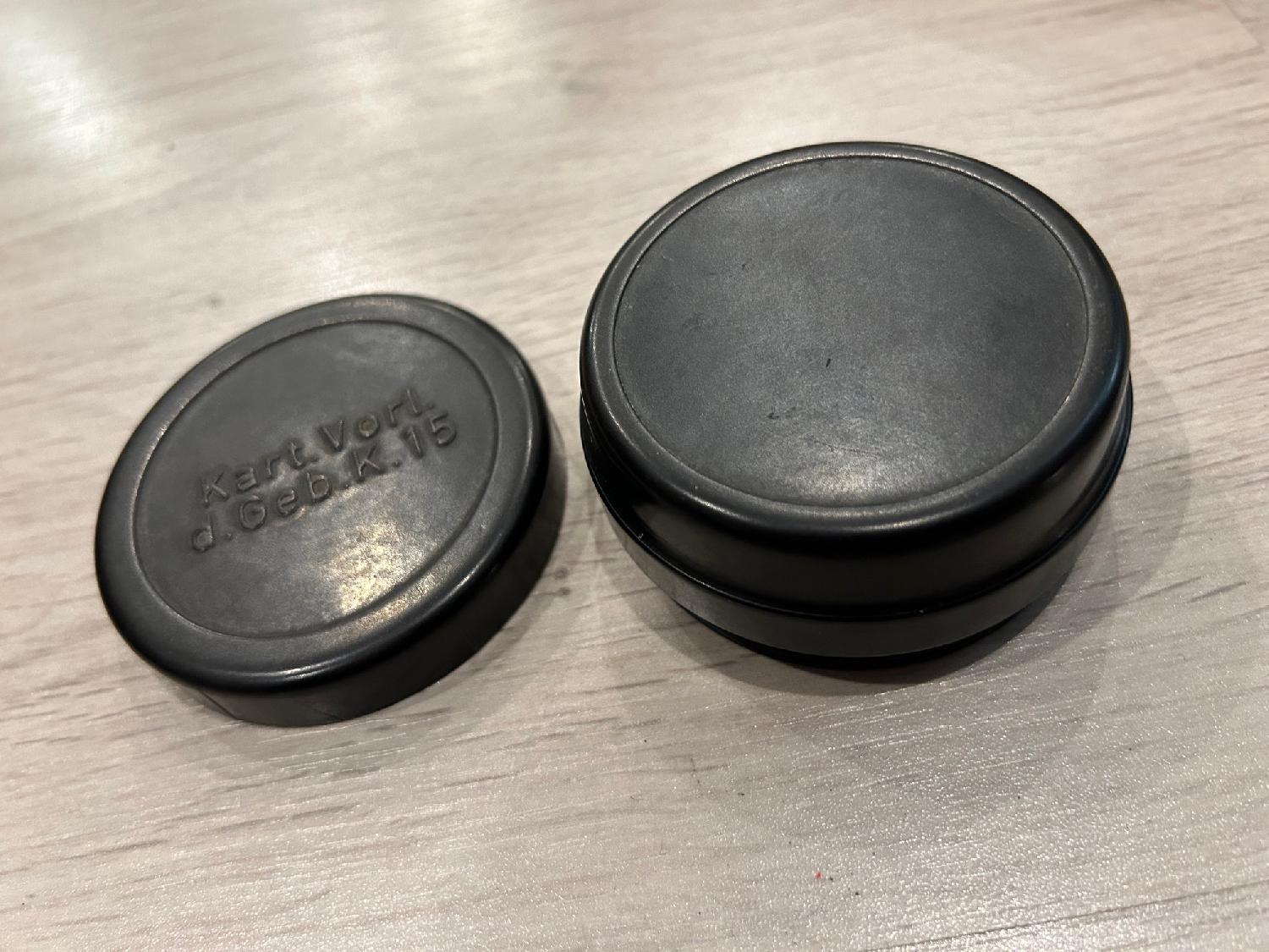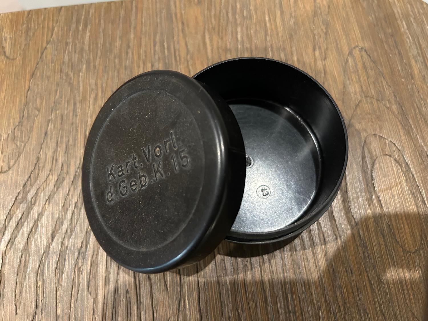 Boite en Bakélite pour appoints de charge de canon 7,5cm Geb.K.15. Dimension 7,5cm X 4cm. Très bon état. Marqué 1943. Frais de port en supplément 5 euros, pour la France métro.