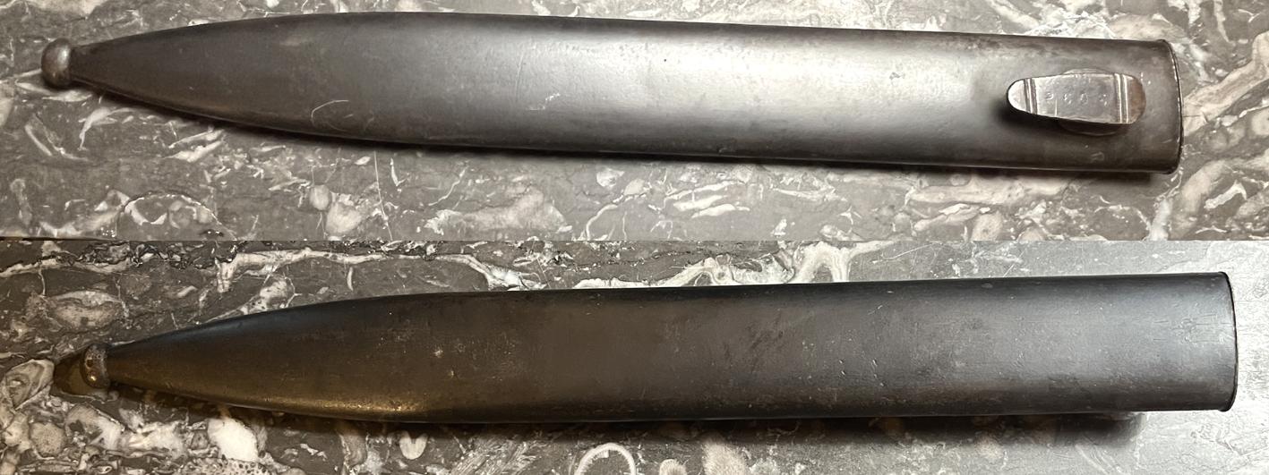 Bonjour, AV un fourreau seul de baïonnette pour Kar98 K. Manque la vis. Un numéro de série frappé sur le crochet, et il semble y avoir un poinçon (WaA ?) sur la pointe. Bon état/TBE. Port en supplément (MRelay de préférence, 3,99 en locker France) et paypal entre proches si possible. Remise en main propre possible (75).