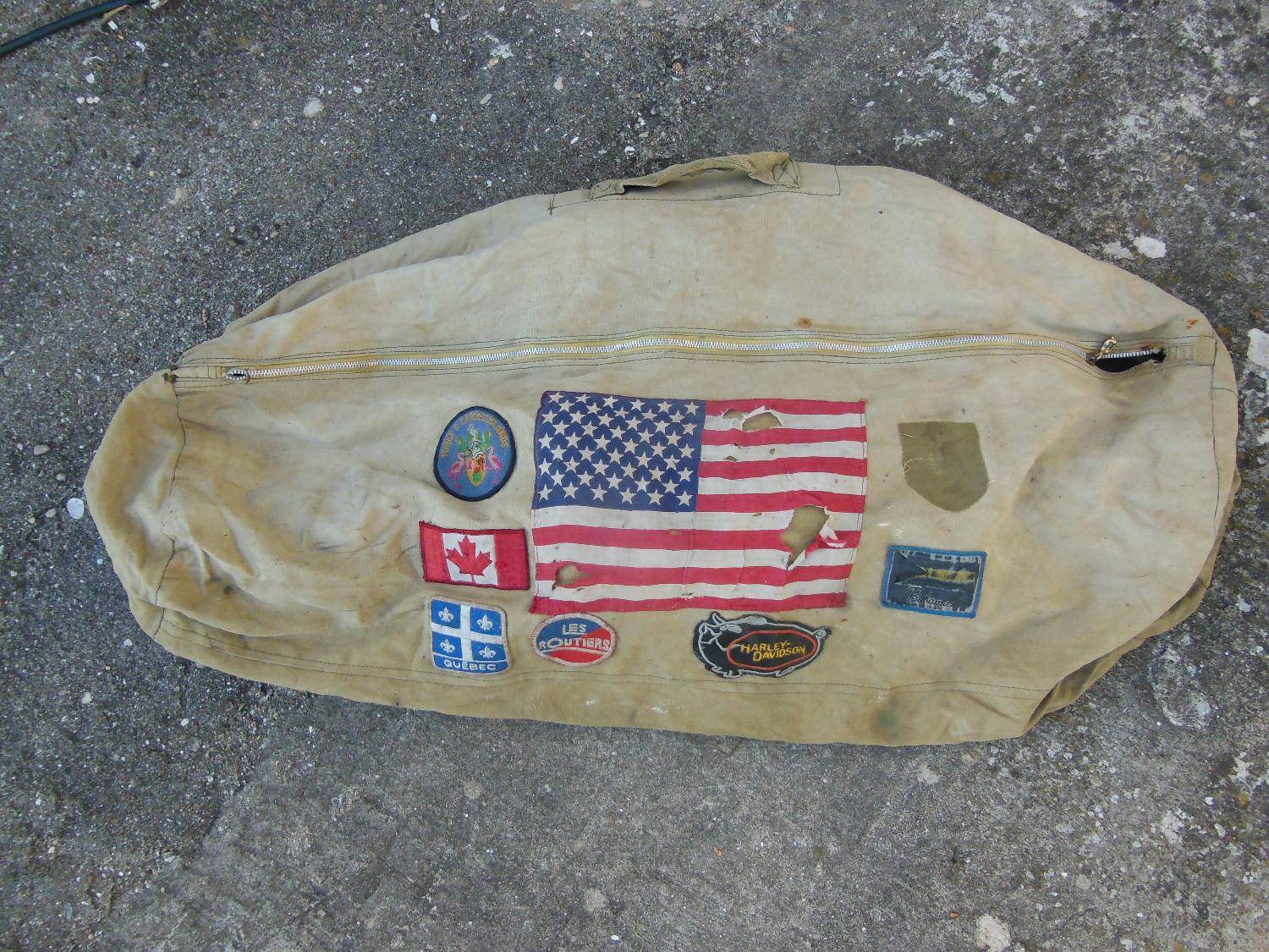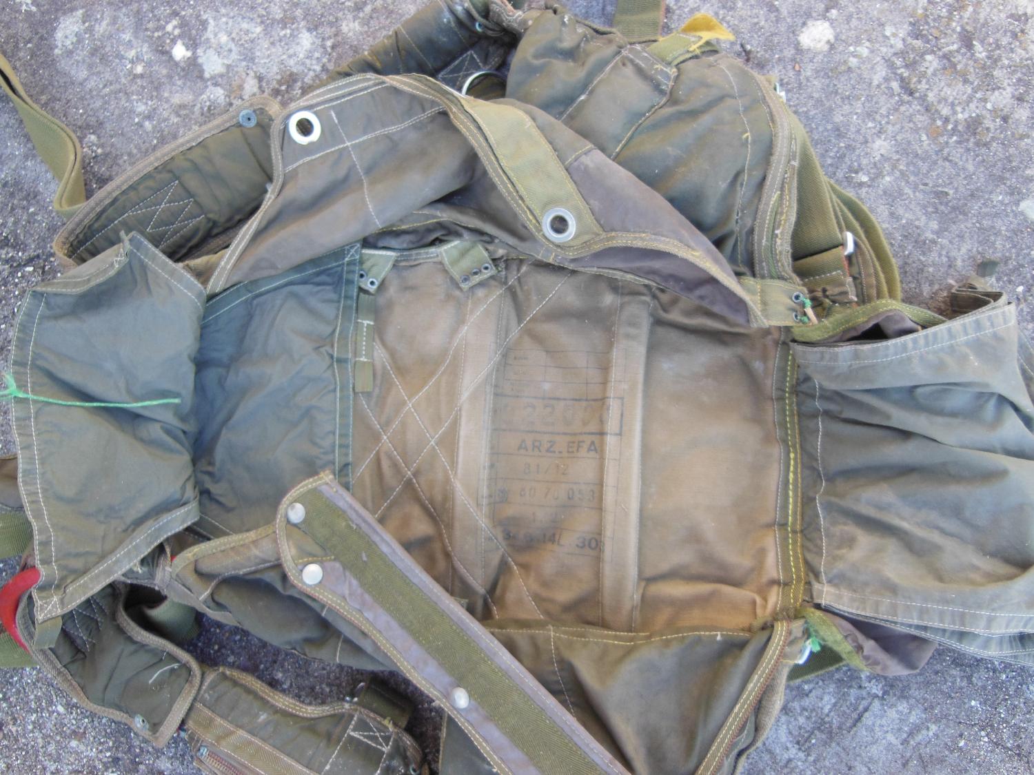 Parachute EFA 346, toutes les sangles semblent présentes? Vendu avec sac de transport réutilisé par un biker, la fermeture éclair a été bricolé, mais reste fonctionnelle.