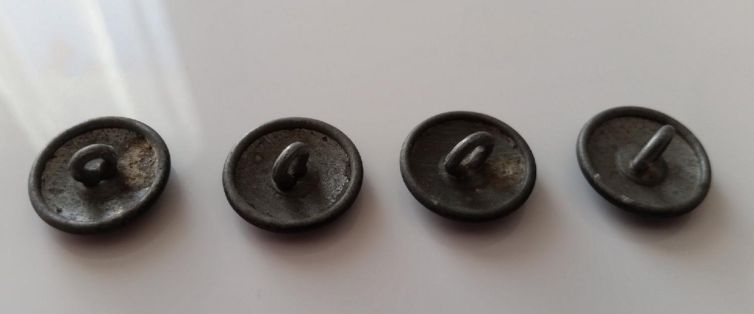 Lot de 4 boutons pour vareuses Luftwaffe. Métal en zinc recouvert de peinture couleur gris bleu. Diamètre de 19 mm. Très bon état. Authentique, respect de la charte du collectionneur.