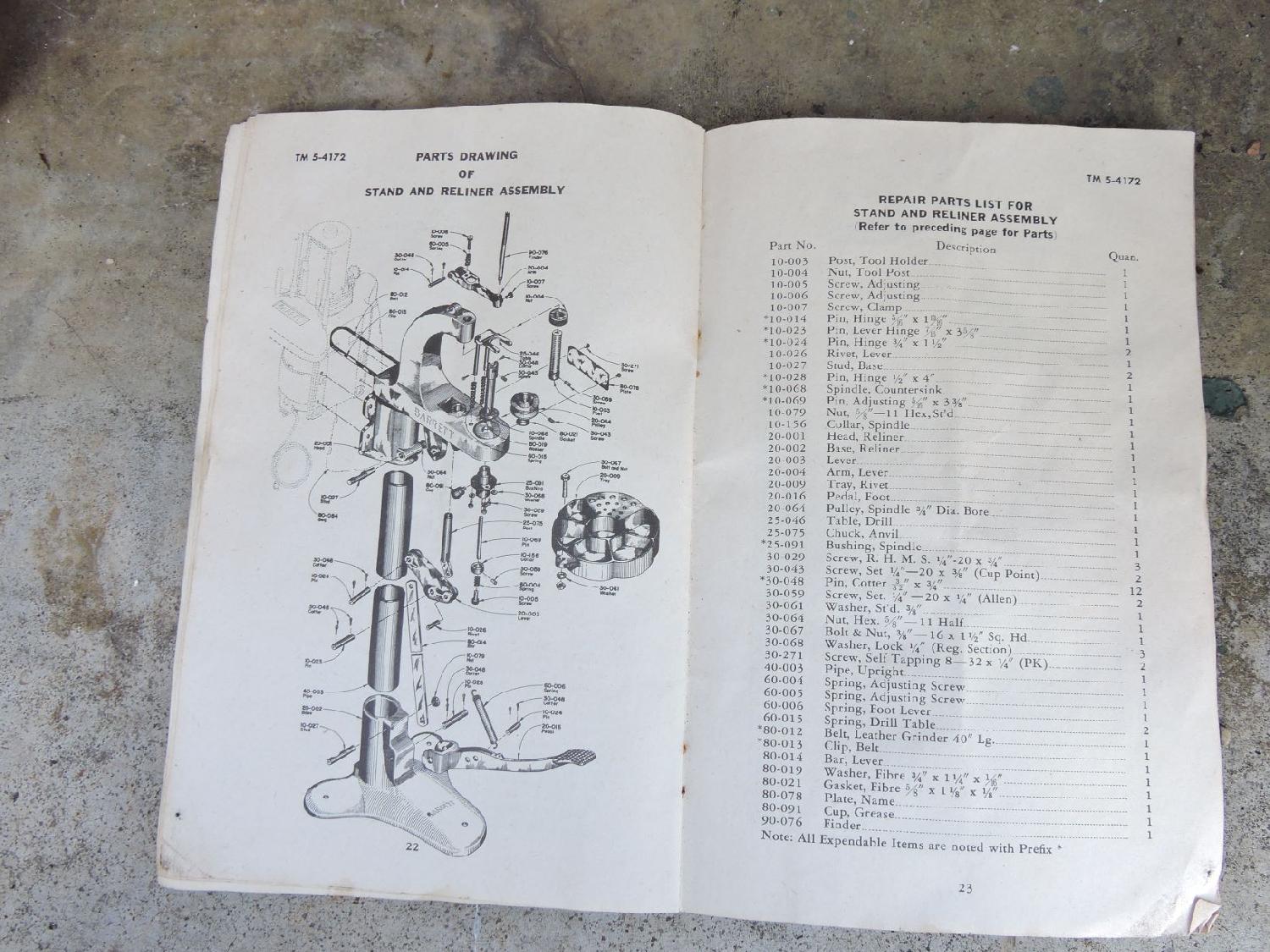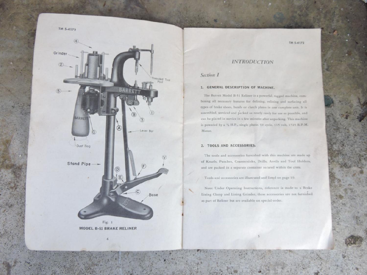 Manuel technique TM 5-4172 daté de mai 1944 sur la machine à garnir et à rectifier les freins.