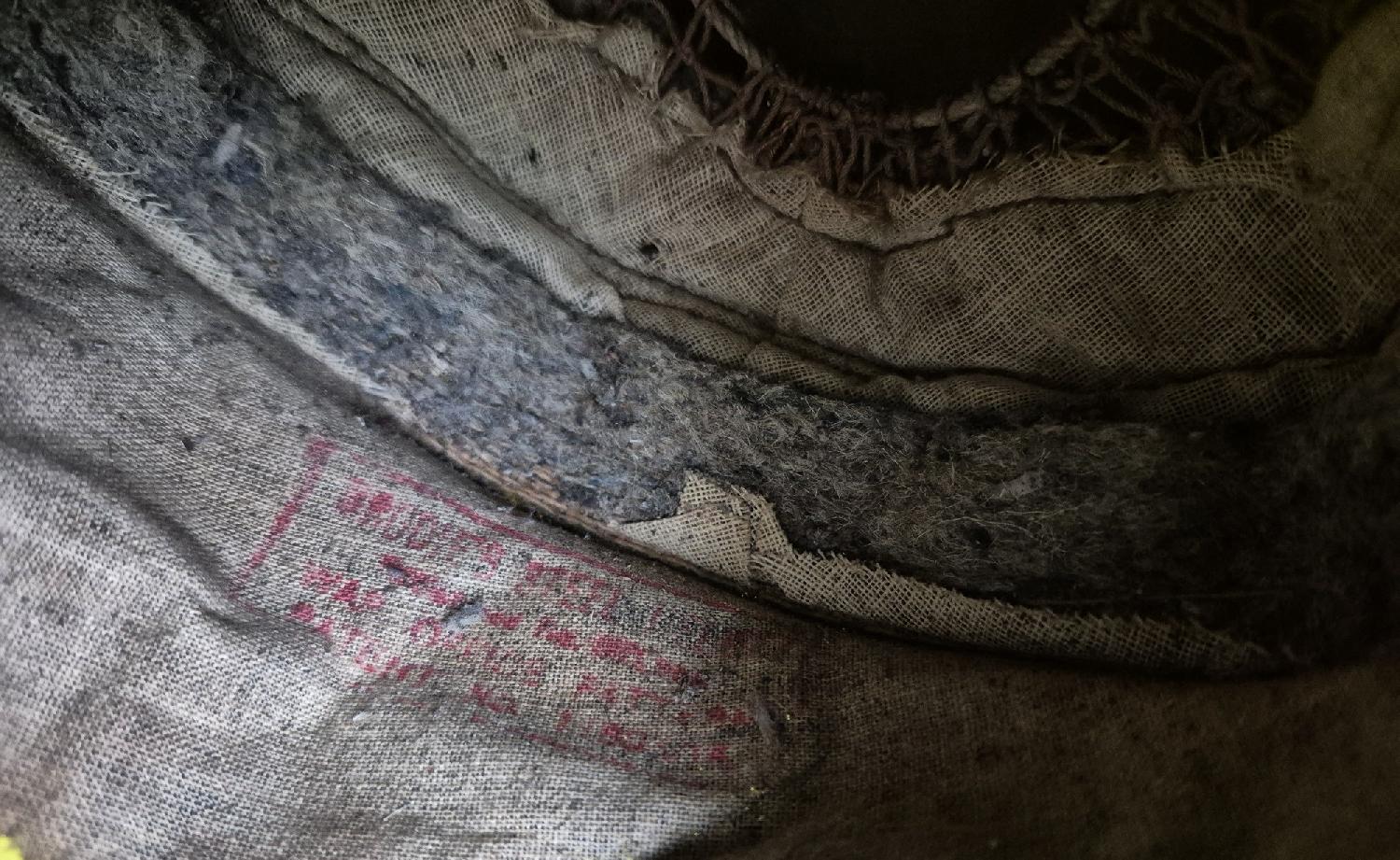 Le revers de la coiffe présente le tampon rouge qui indique une fabrication réservée à l'armée.