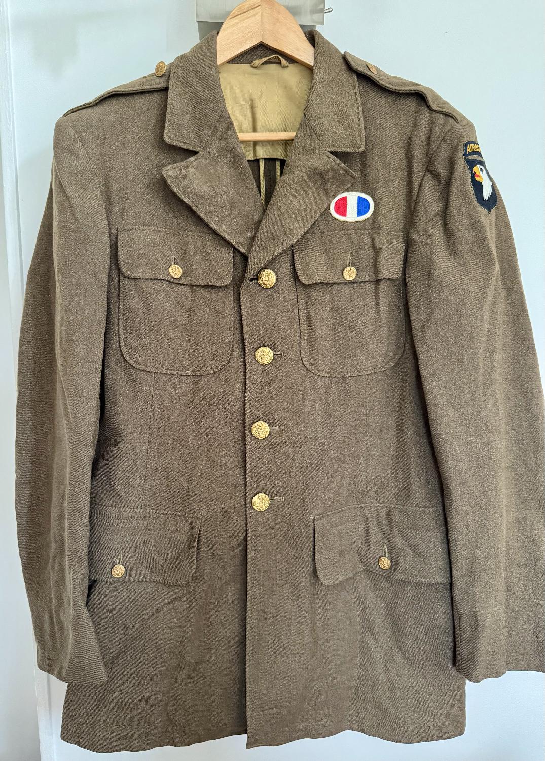 * Belle veste 4 poches originale datée 42/43 , montée avec patchs repros 506 PIR 101 AB, bon état général * Dossier photos sur demande avec votre email * Règlement Paypal entre proches ou virement bancaire *