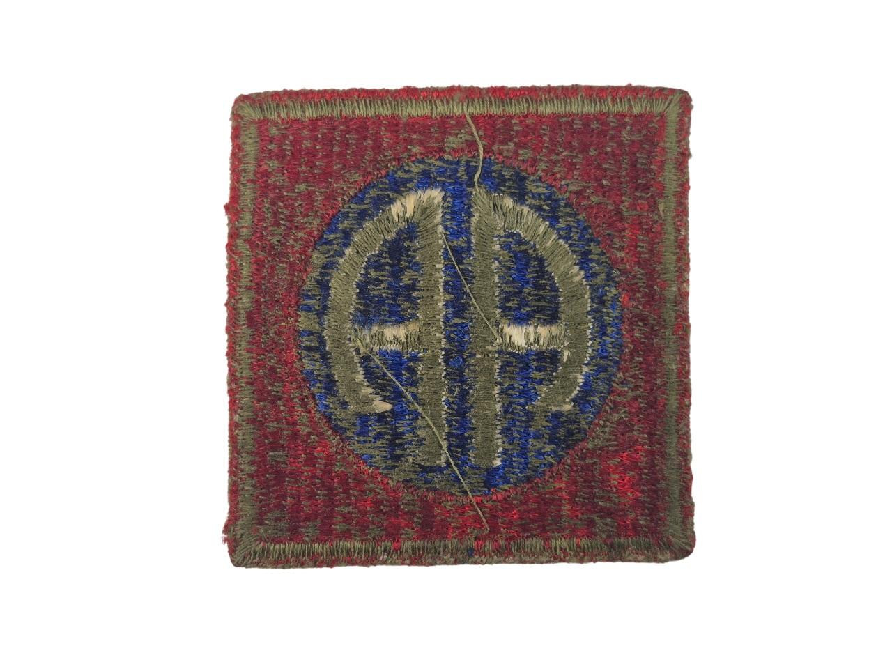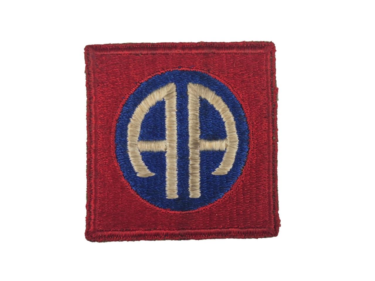 Patch d'épaule, d'origine Deuxième Guerre, de la 82nd Airborne Division "All American" qui sauta en Normandie dans la nuit du 5 au 6 juin 1944. Campagnes : Sicile, Italie, Normandie, Hollande, Belgique, Allemagne.