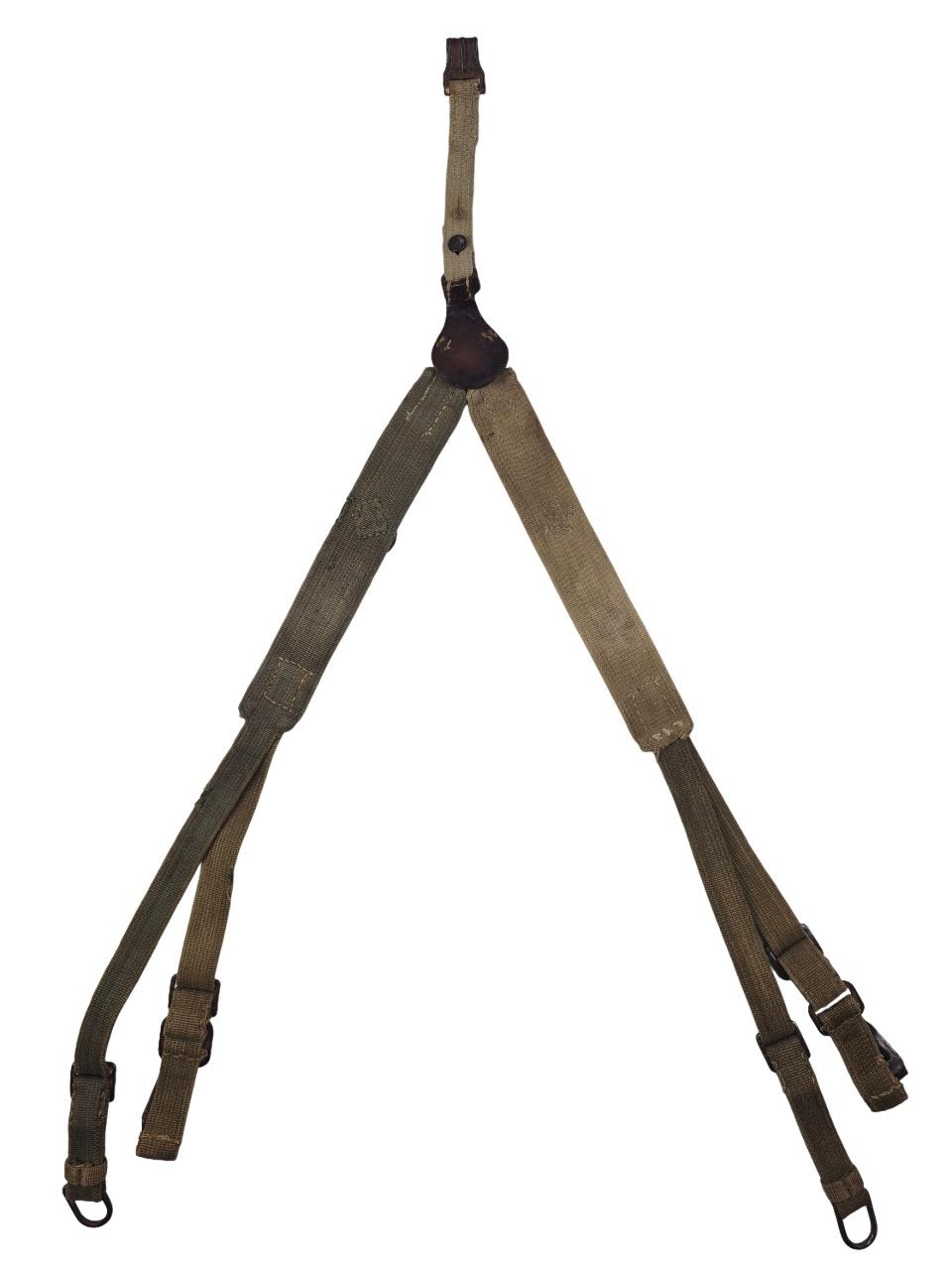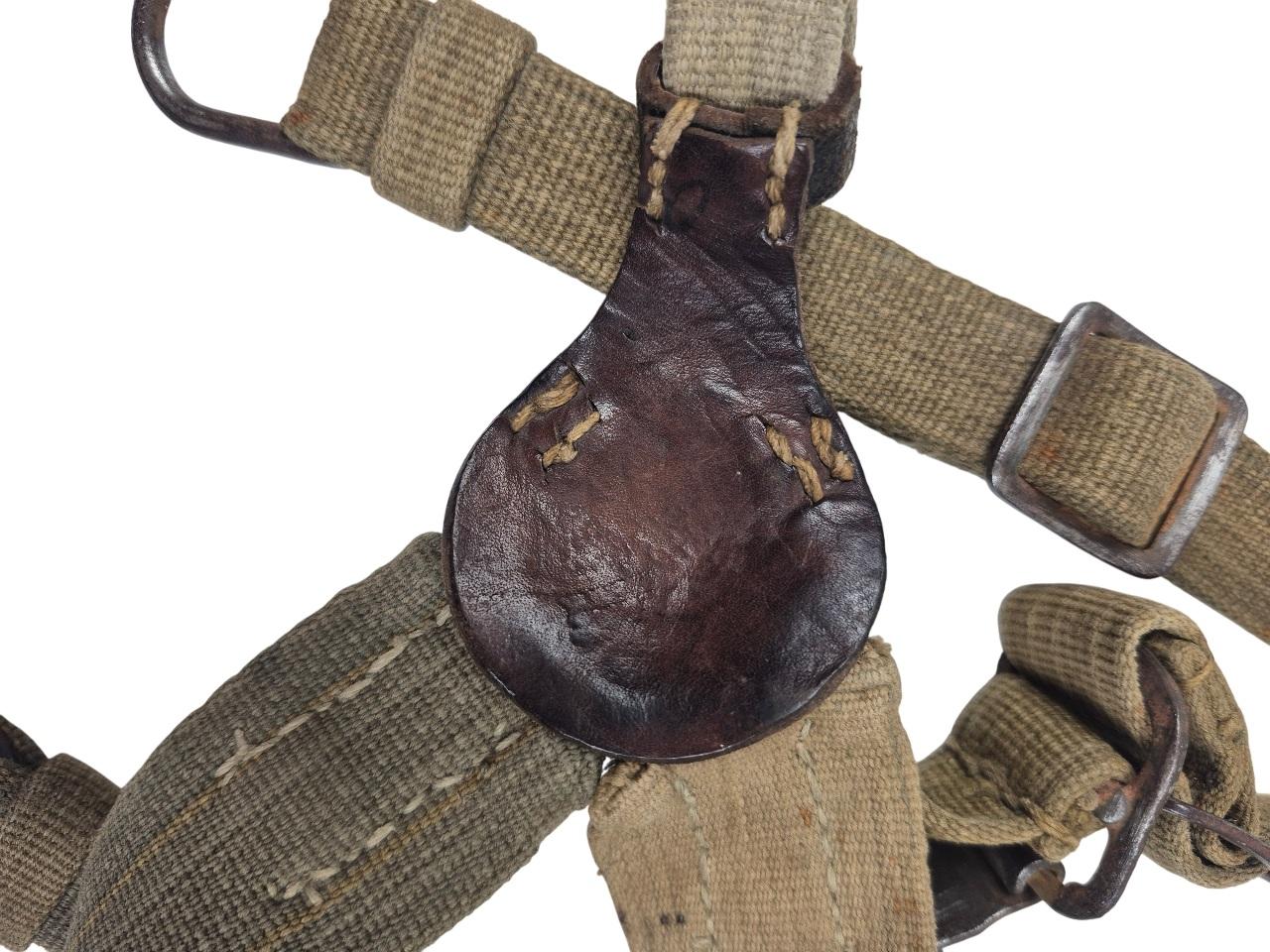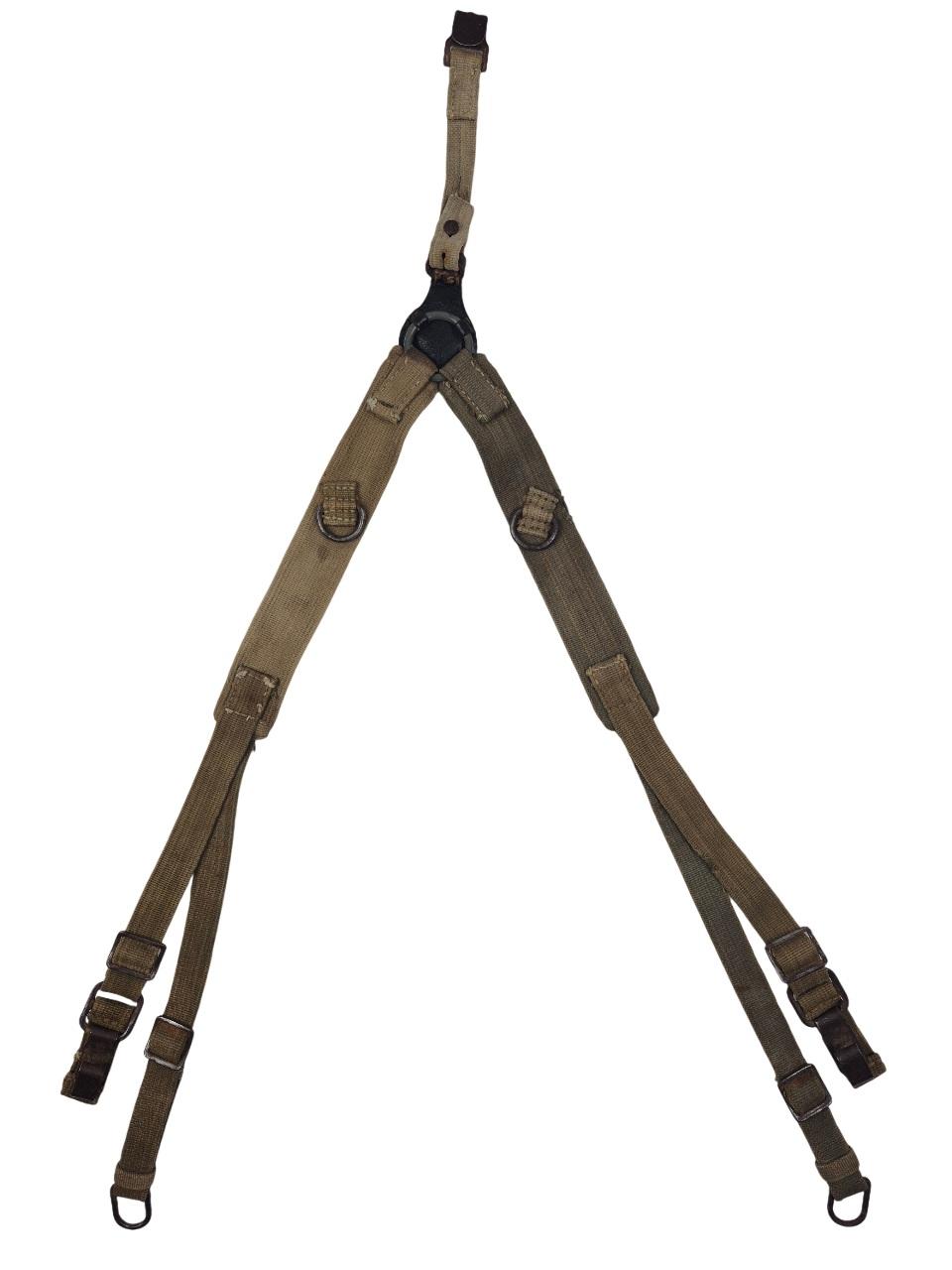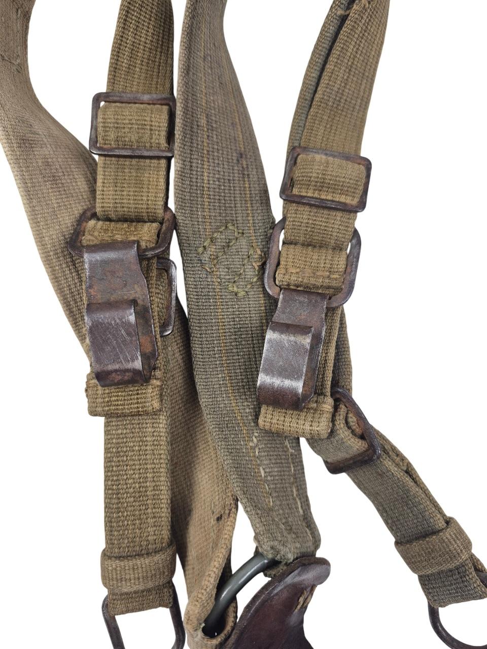 Modèle lourd avec contres sanglons et anneaux de fixation du sac à dos, les sangles sont en bonne condition, les anneaux et crochets sont en fer.
