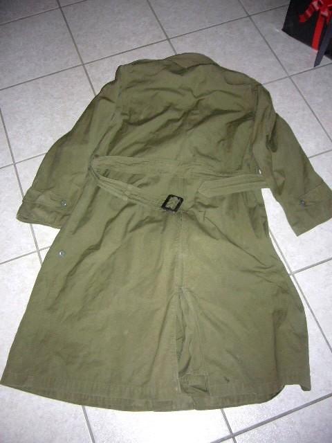 Imperméable offocier armée Française, années 1950-1960. Sa coupe a des similitudes avec celui délivré aux soldats US durant le second conflit.