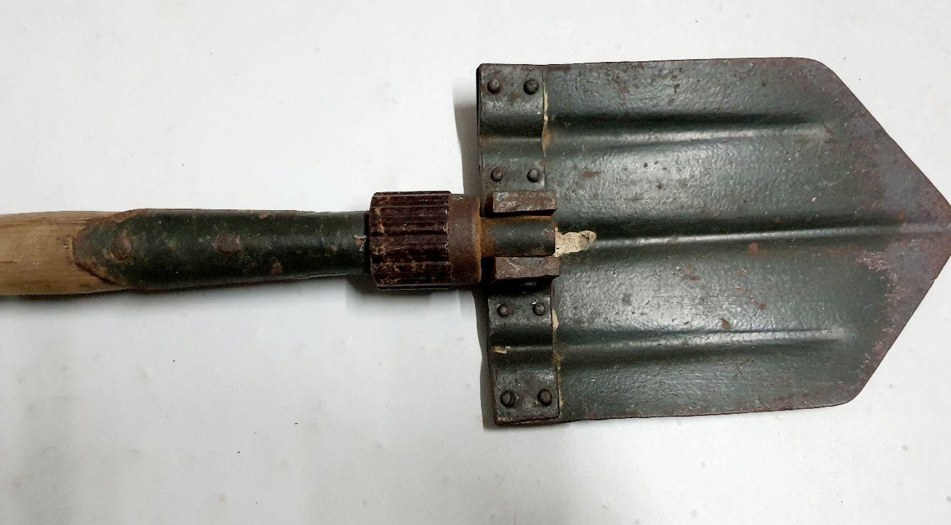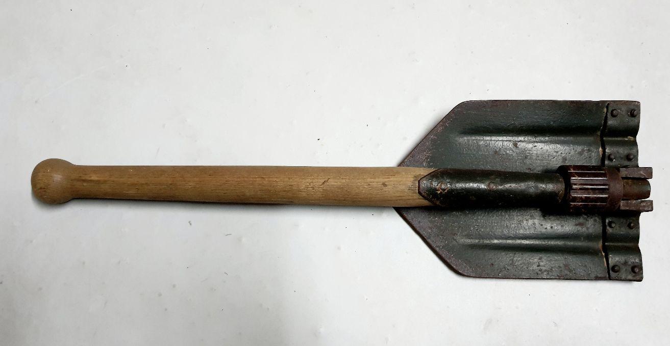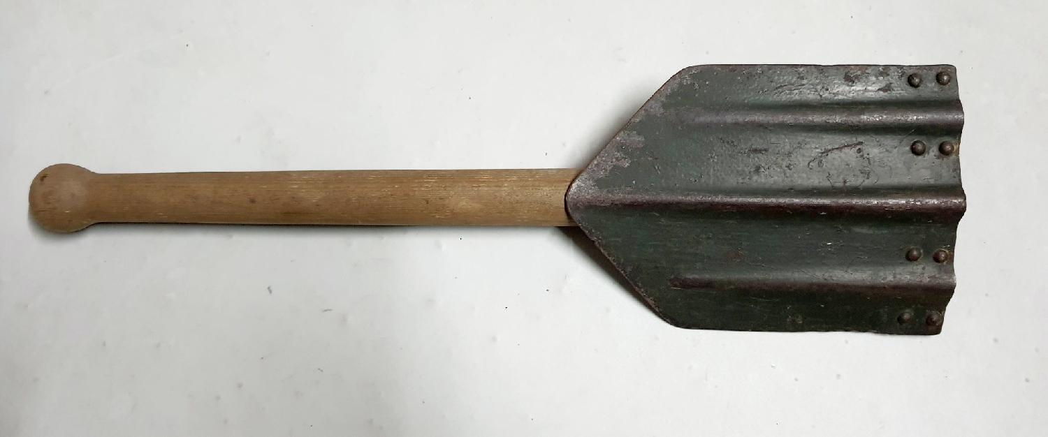 Pelle pliante, peinte en Feldgrau. Dans son jus. Bague en bakelite. Aucun marquage apparent.