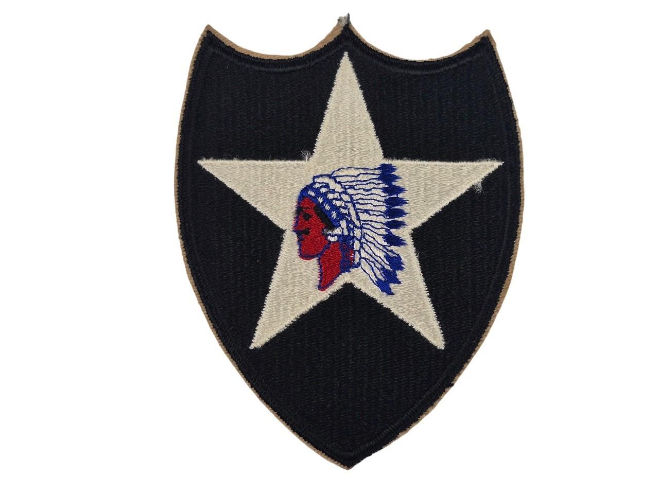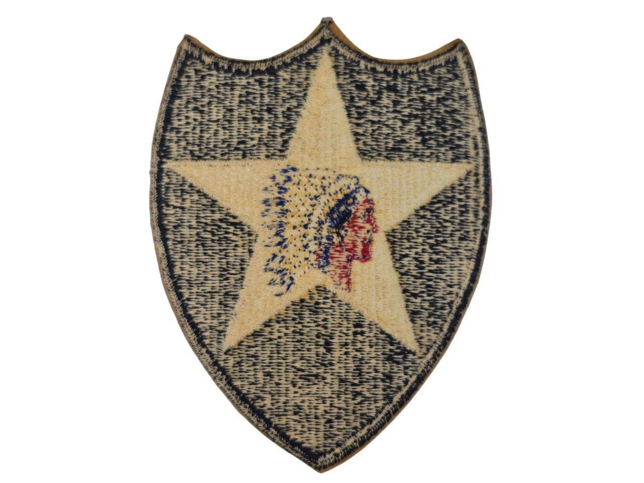 Insigne d'épaule d'origine Deuxième Guerre de la 2nd Infantry Division "Indian Head" qui débarqua sur Omaha Beach le 7 juin.