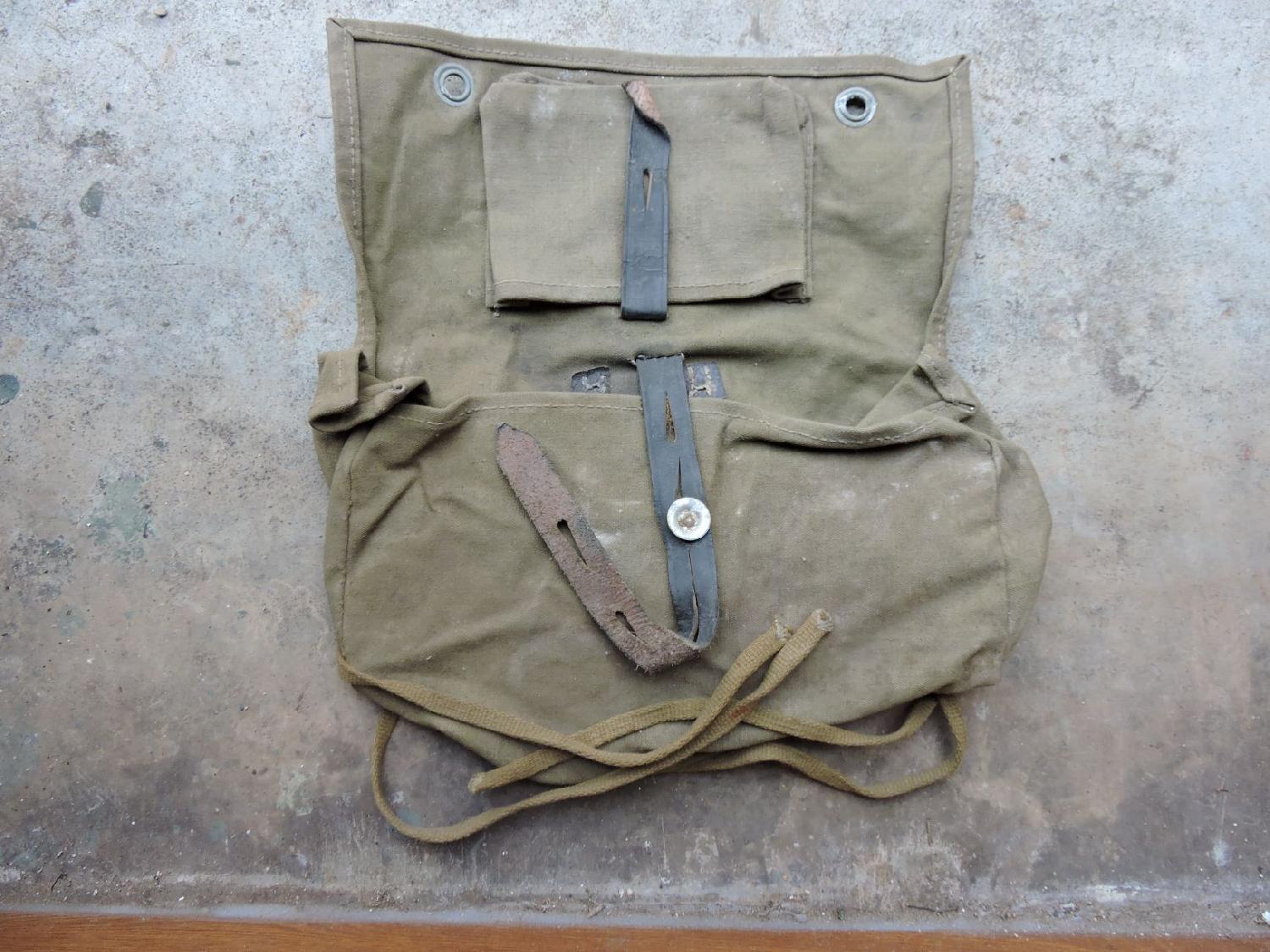 Sac en toile pour paquetage d’assaut allemand "Sturmgepack". Complet avec l’ensemble de ses sangles en toile et fermetures en cuir noir. Marquage du fabriquant mais date illisible.