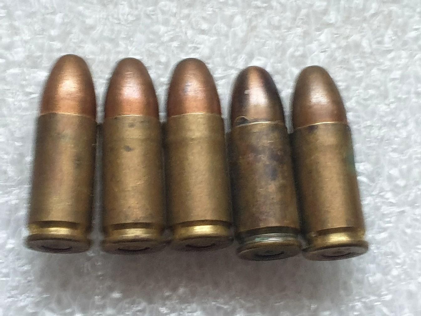 5 cartouches 9mm anglaises neutralisées de 1944 (M.104)