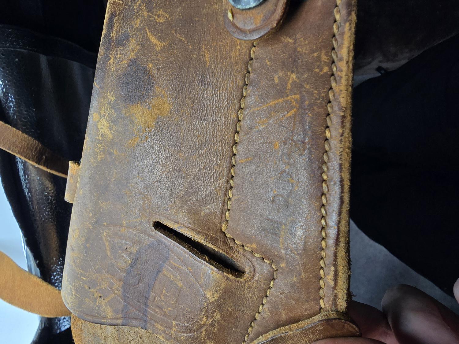 Jolie étuis US M3 de poitrine. Fabrication Enger Kress de 1943. Cuir souple. Pression fonctionnelle. Laundry numbers visibles 2 fois.