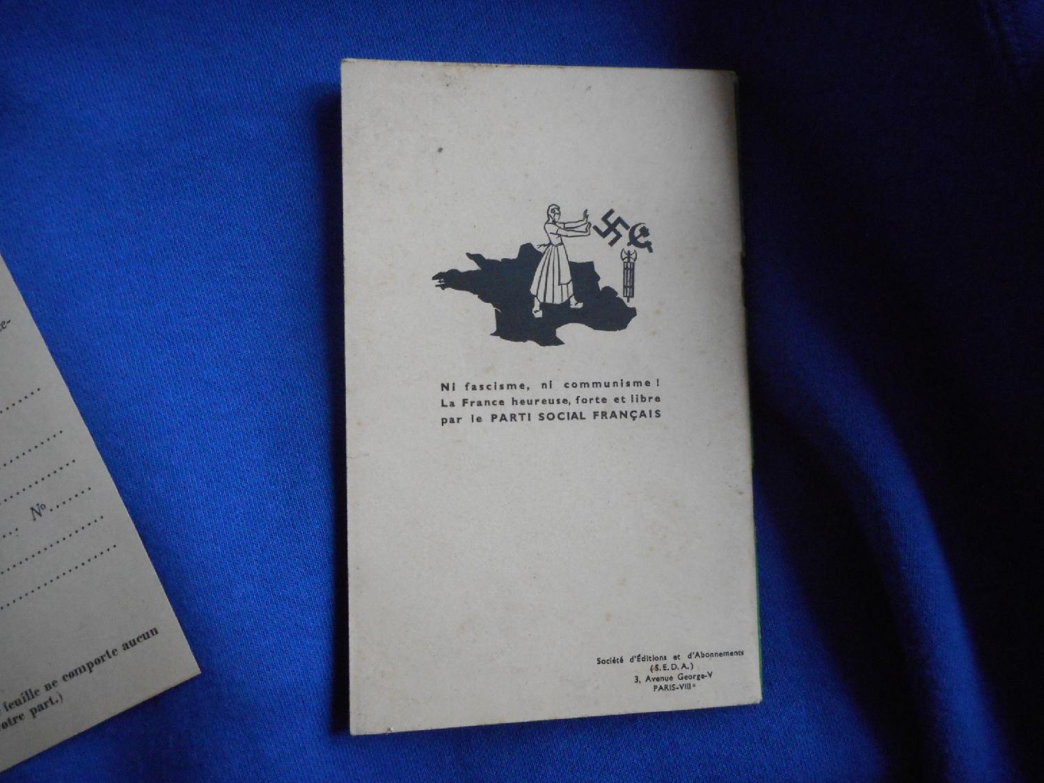 vends : livret programme et propagande parti socialiste français . s-d vers 1936 /1941 . 64 pages . + feuille de demande d'adhésion .