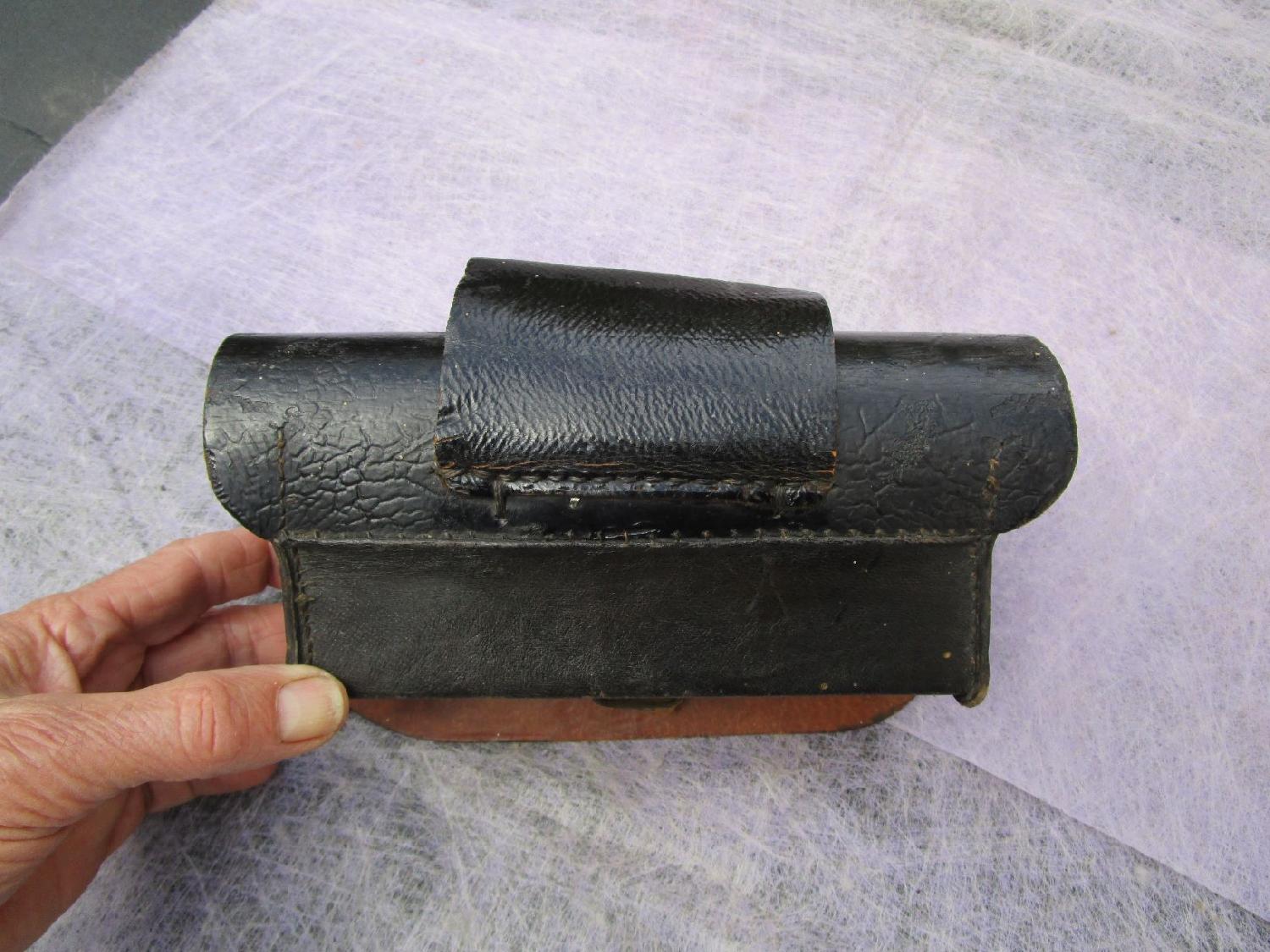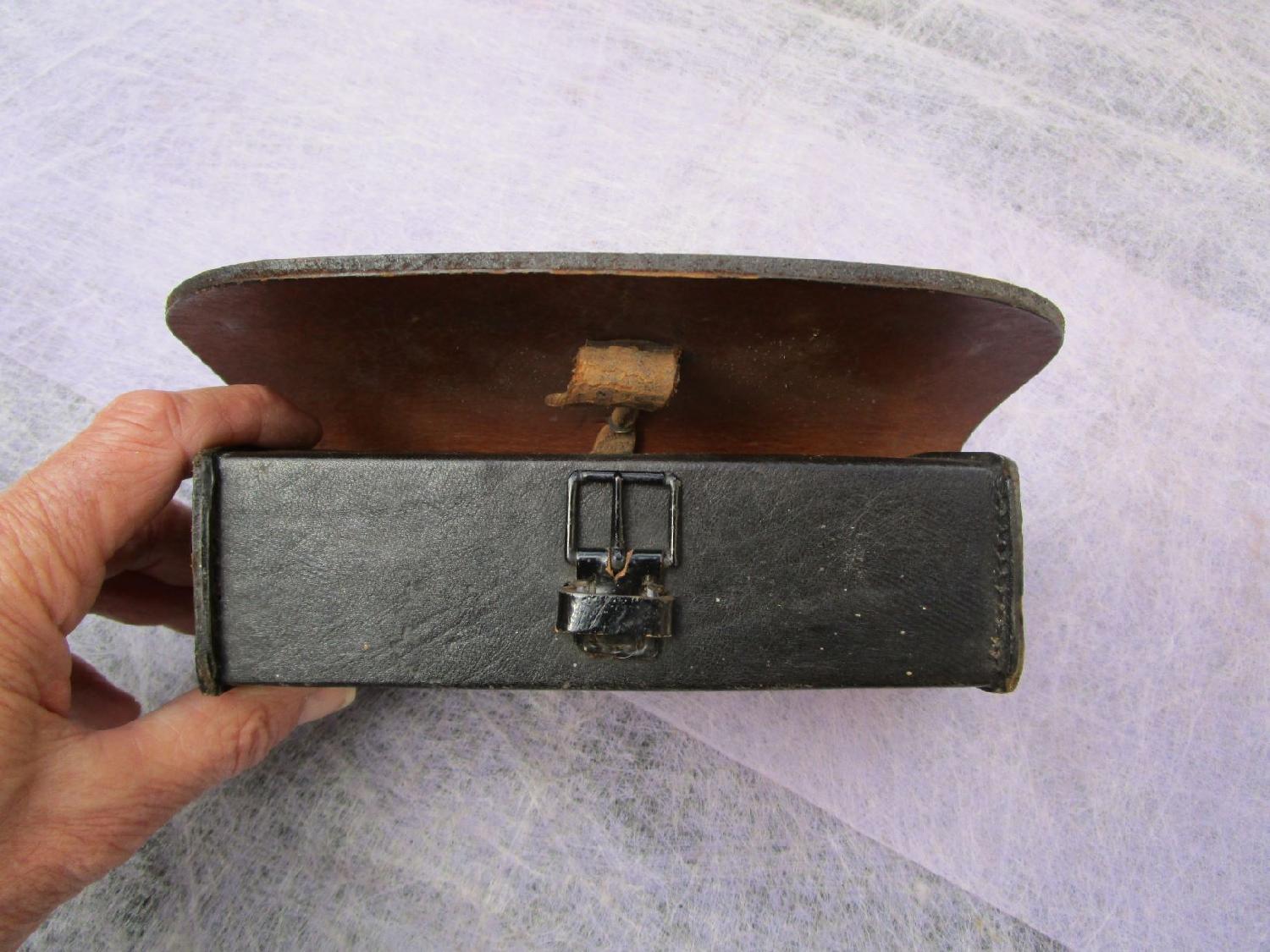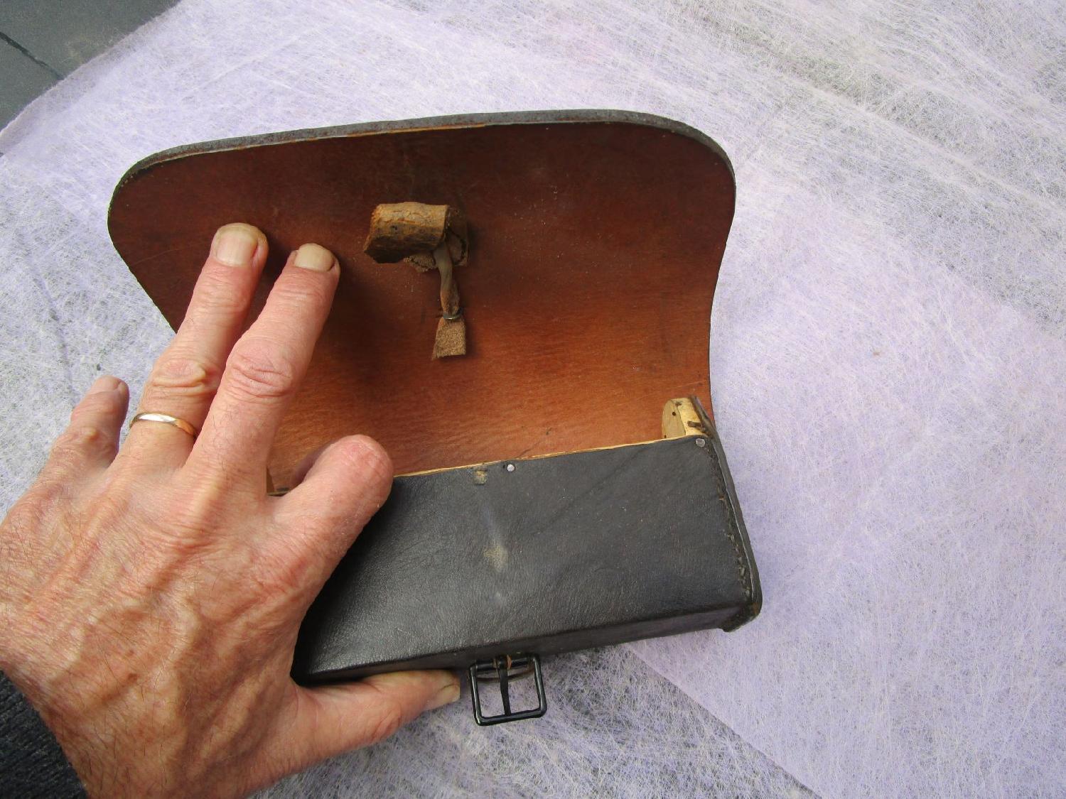 Giberne en TBE, beau cuir verni. Languette de fermeture et de fixation de la grenade en TBE. Autres photos sur demande. Prévoir 8.65 euros pour un port en colissimo ou 5.70 euros par mondial relay.