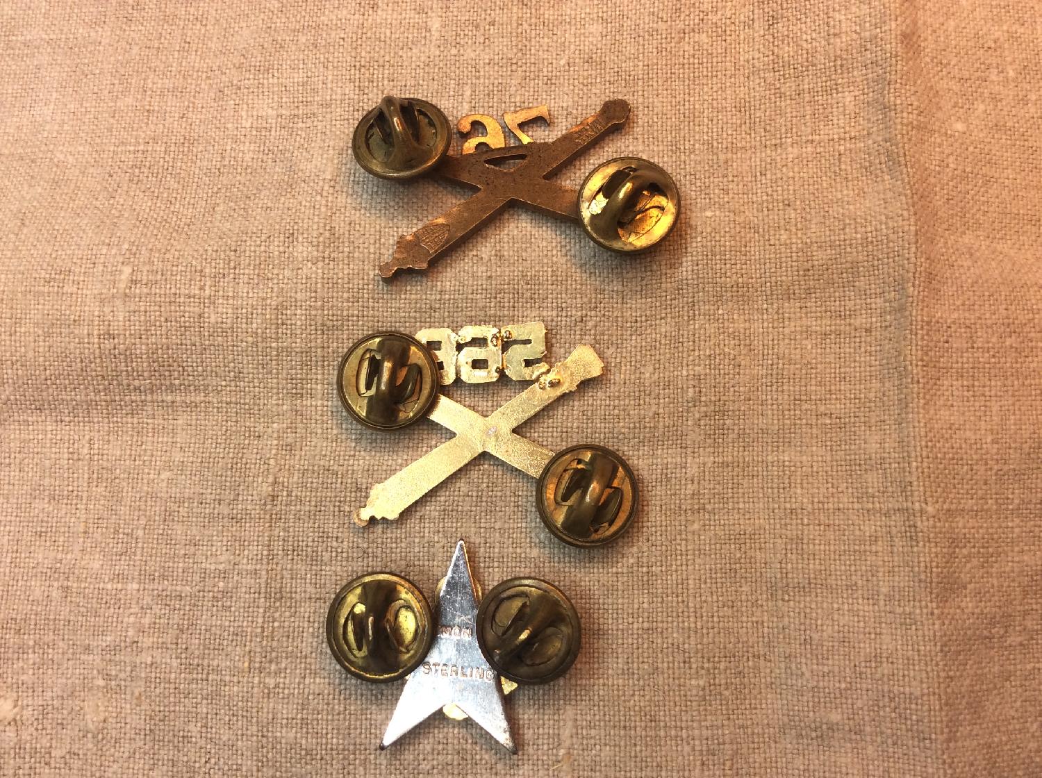 Lots de trois insigne de col US authentiques. Port compris pour la France.