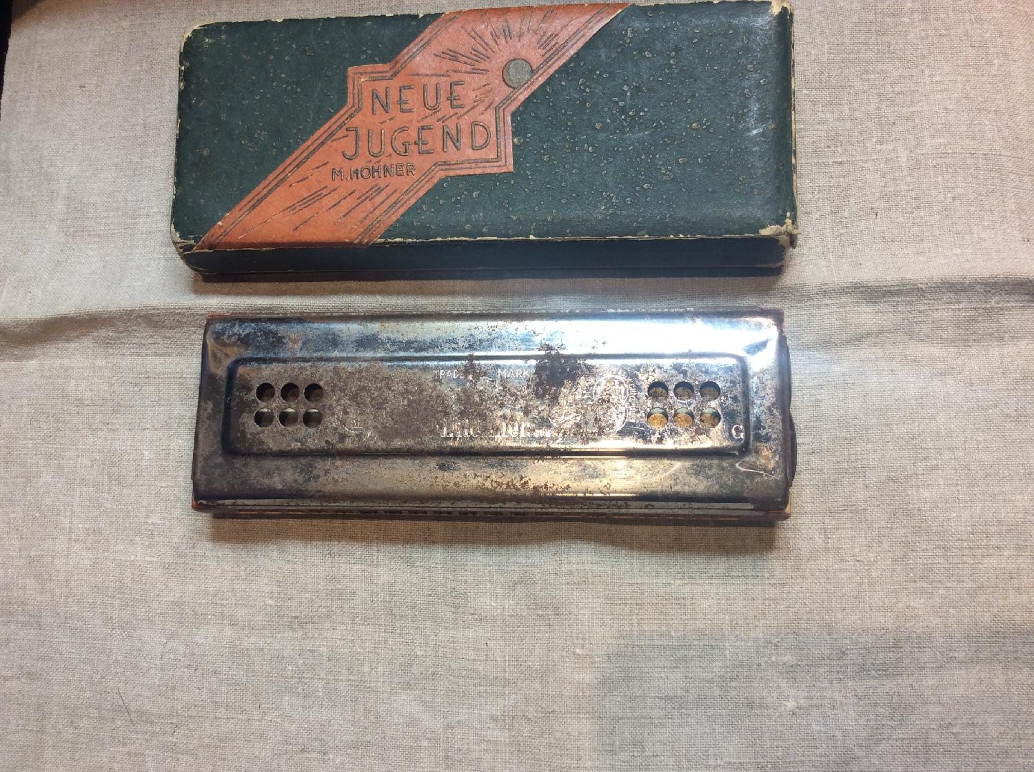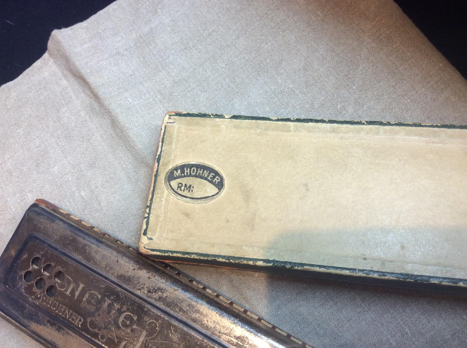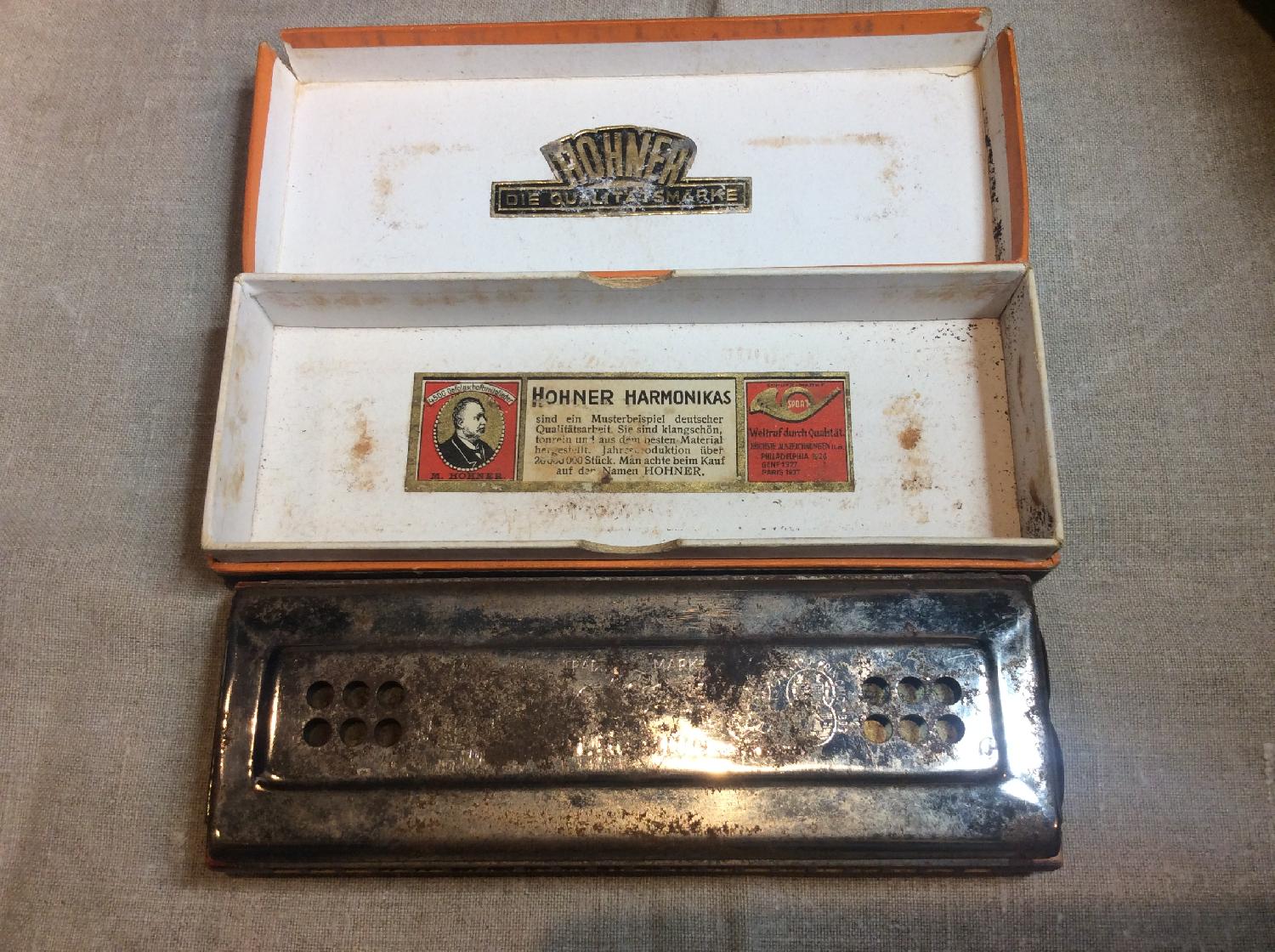 Suite à un rangement de vitrine je vends cet harmonica avec sa boîte et encore l’étiquette de prix en Reichsmark.