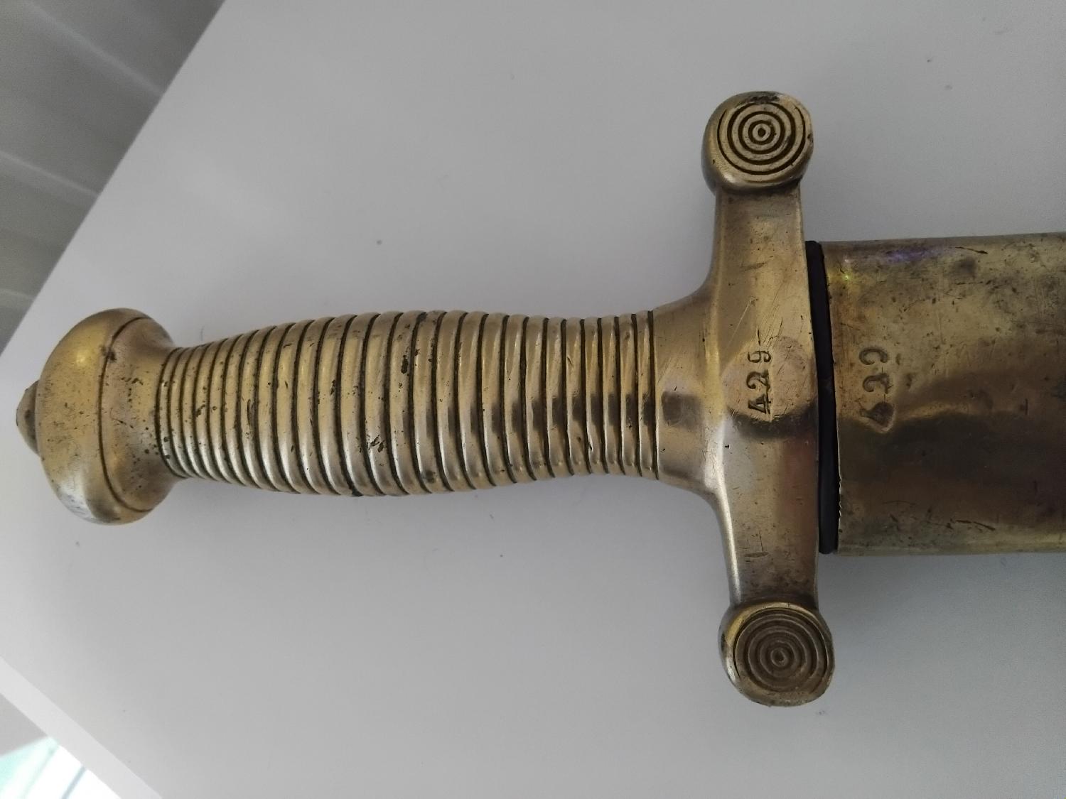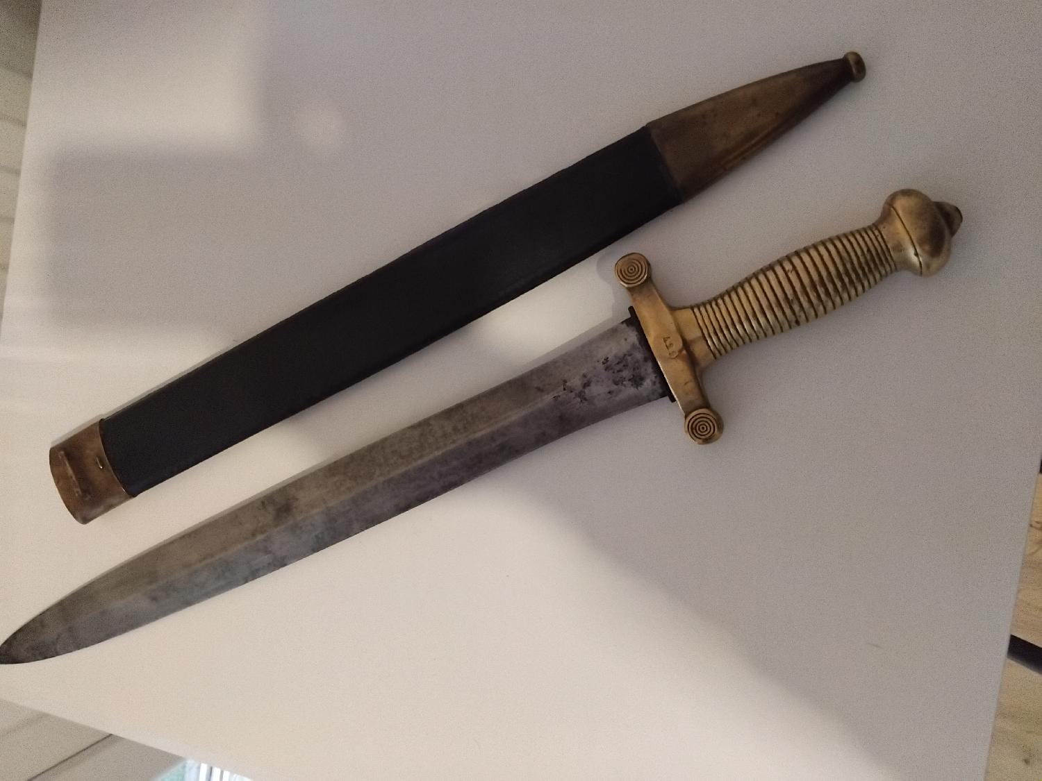glaive de la garde national avec son fourreau aux même n°et marquage fabriquant THIELBAUT 1832. Prévoir 20 EUROS de frais de port en colissimo avec signature et règlement par cheque