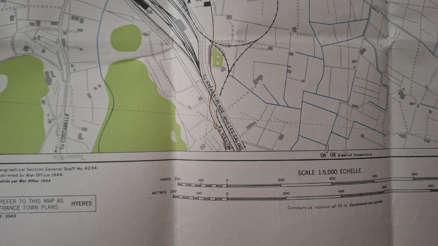 RARE CARTE ANGLAISE DE LA VILLE DE HYERES...AU 1/5000..DÉBARQUEMENT 1944