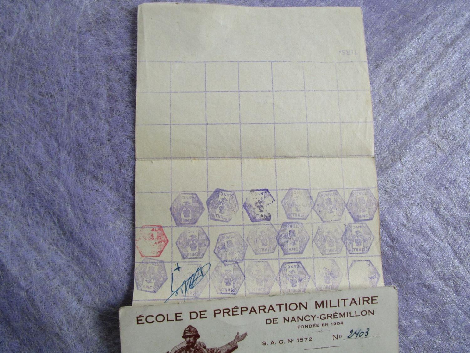 Carte de membre de l'école de préparation militaire de Nancy pour l'année 1951. Plusieurs tampons de cotisation. Prévoir 1.40 euros en lettre verte ou 2 euros en lettre verte suivie.