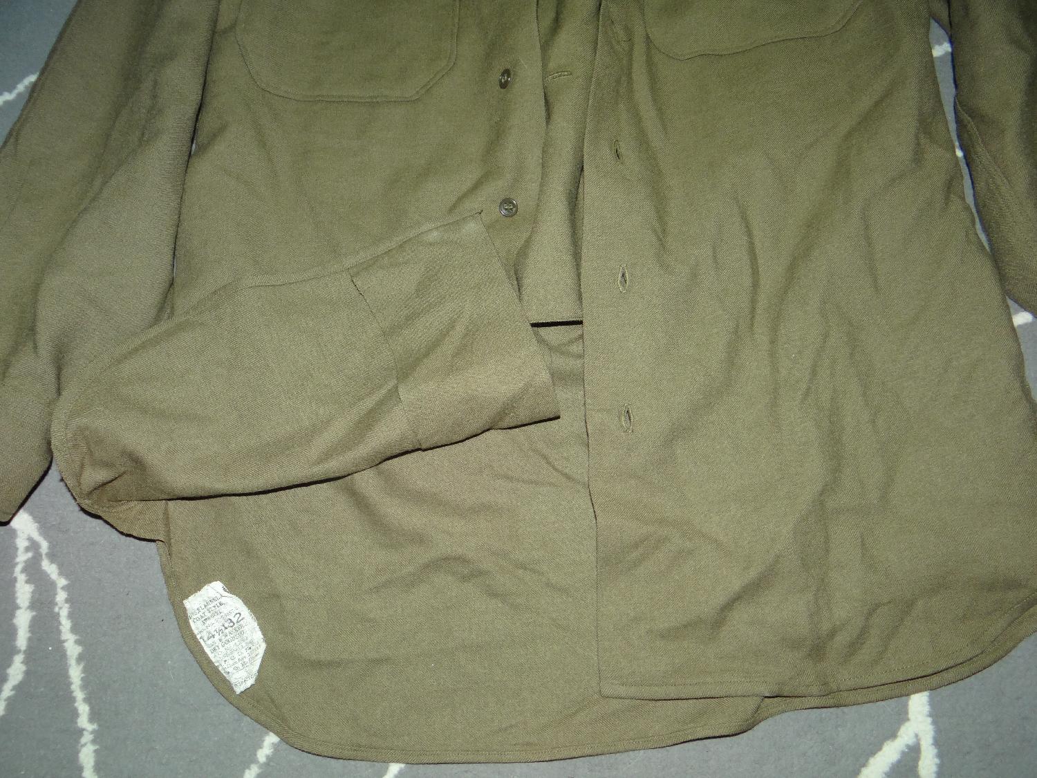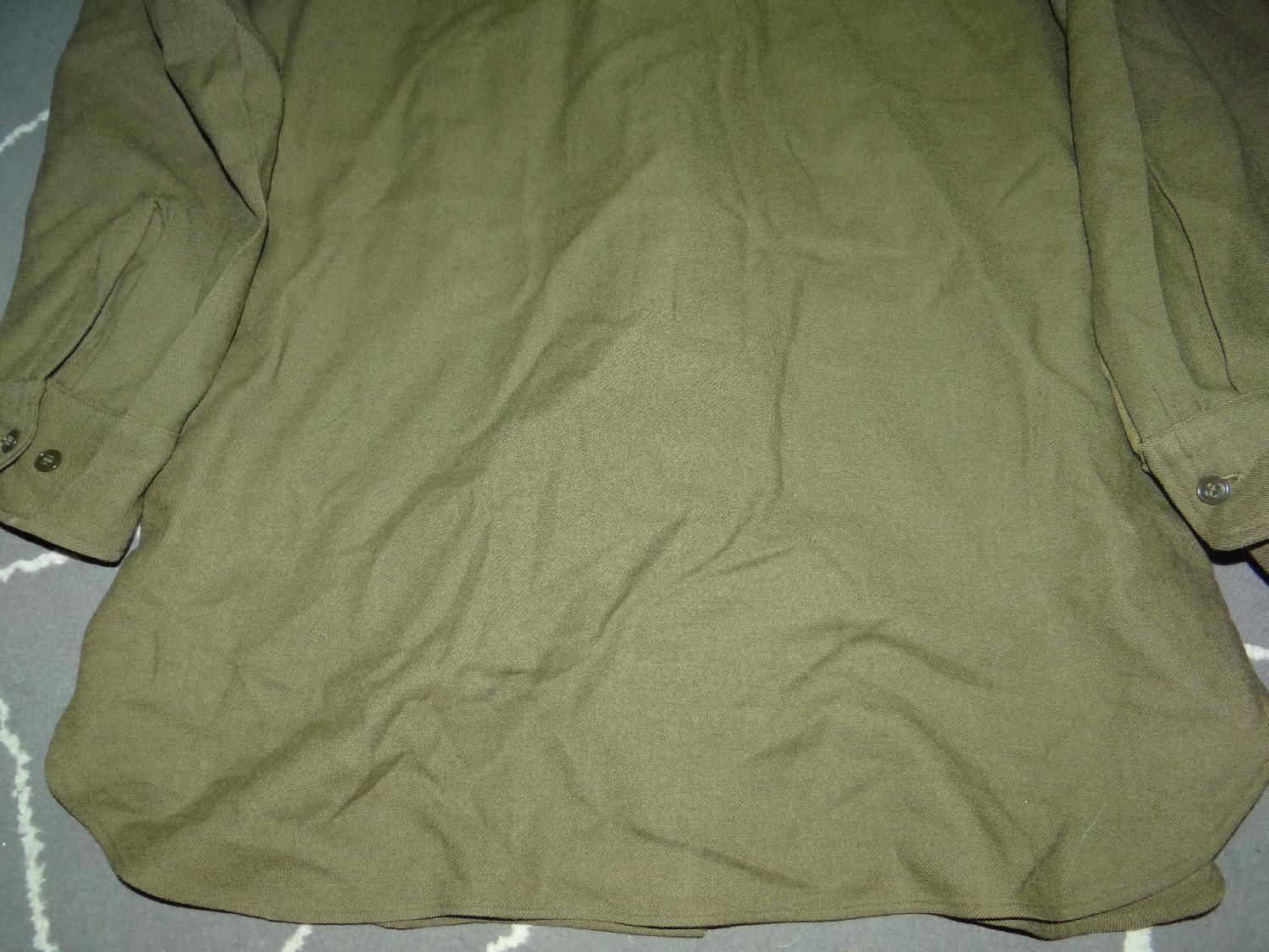 Chemise moutarde troupe avec plastron anti-gaz WW2, modèle réglementaire, étiquette en bas présente datée 1943. Bonne taille mannequin (14 1/2 32).