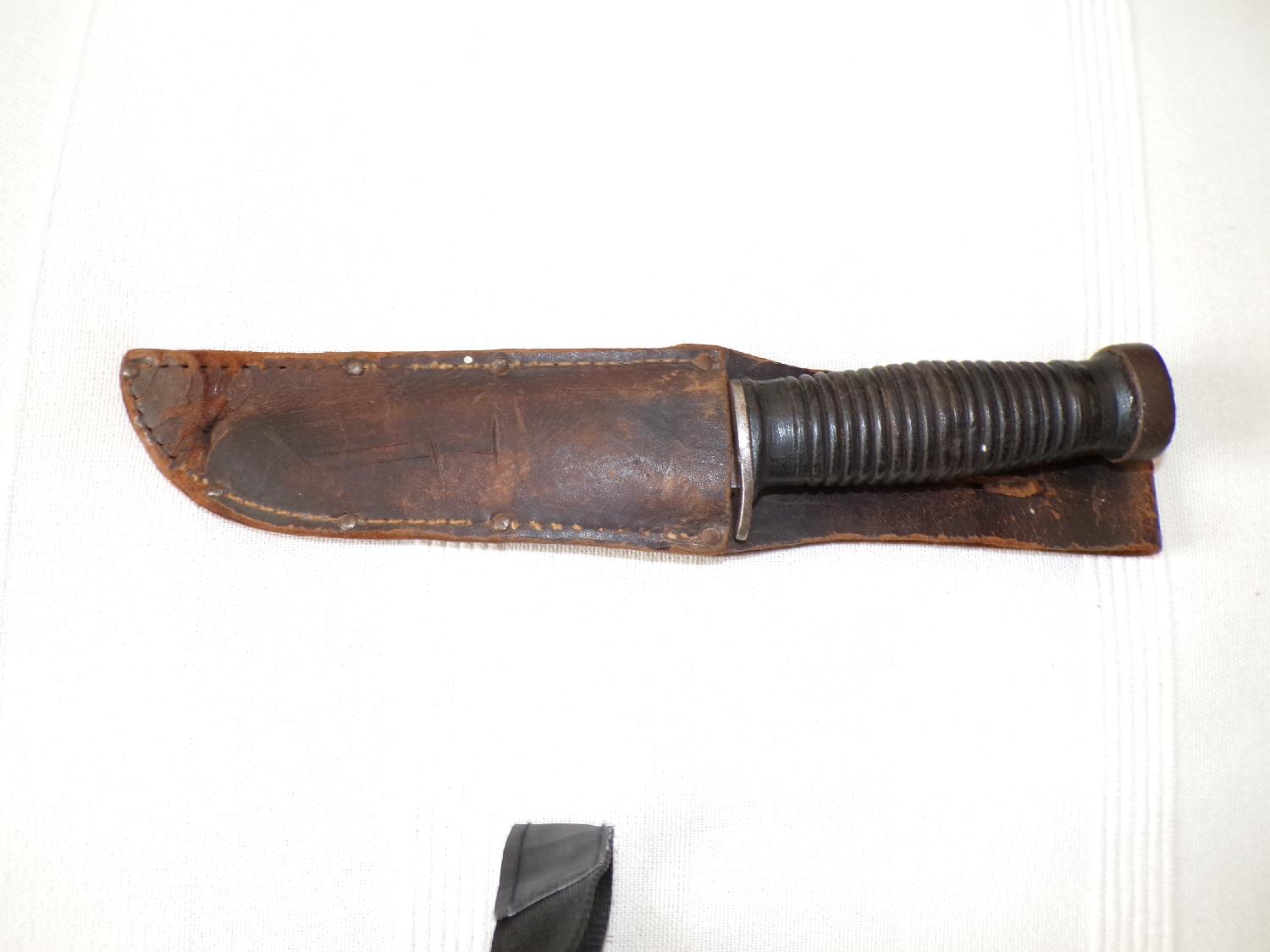 etui cuir fatigué, couteau en TBE sans aucun jeu