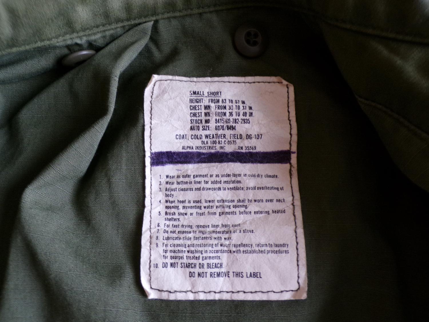 field jacket US M65 alpha industries 1983