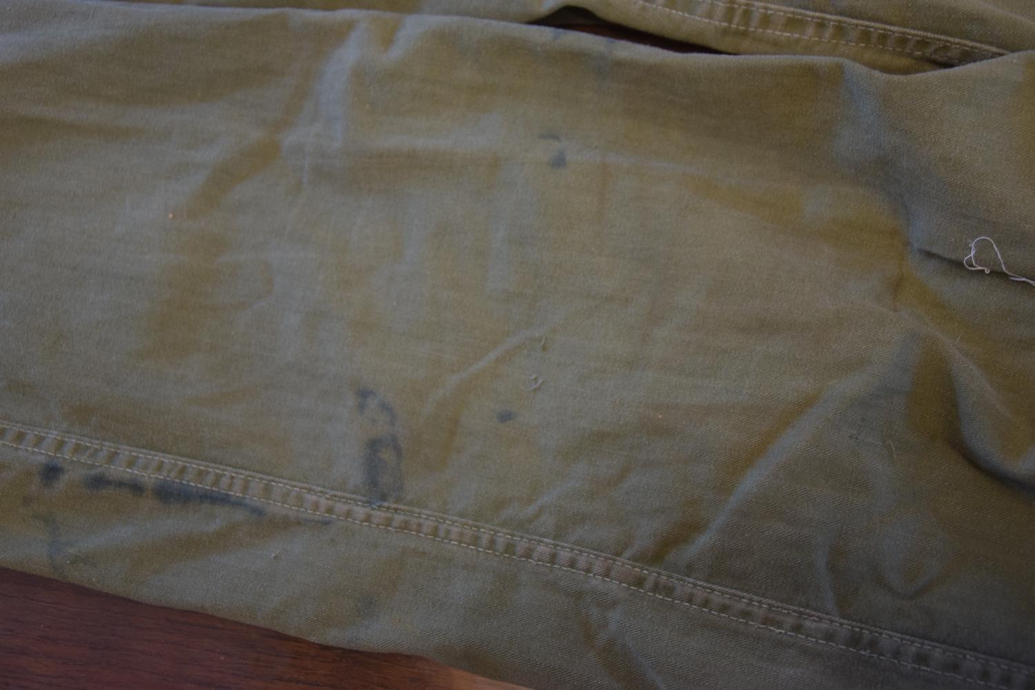 Le pantalon a quelques tâches à l'arrière sur la jambe, qui ne nuisent pas à une belle présentation.