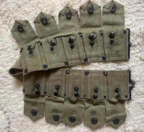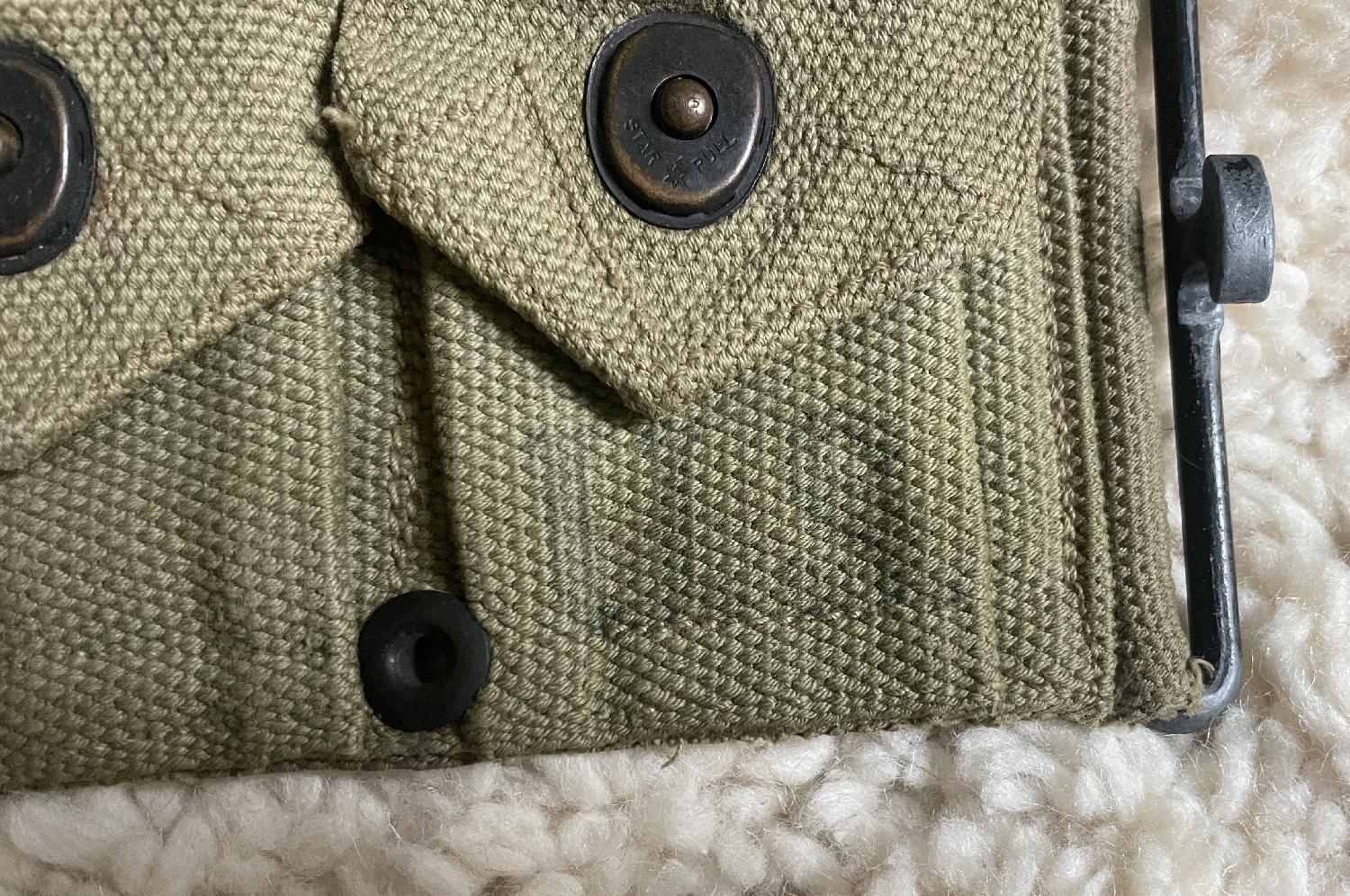 Superbe cartouchière garand OD3, marquages biens lisibles, fabriquée par BOYLE en 1942 (marquage lisible mais difficile à photographier).