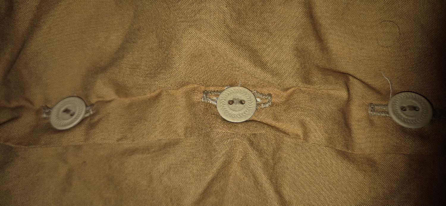 Boutons en carton pressé. Doublure sur la boutonnière.