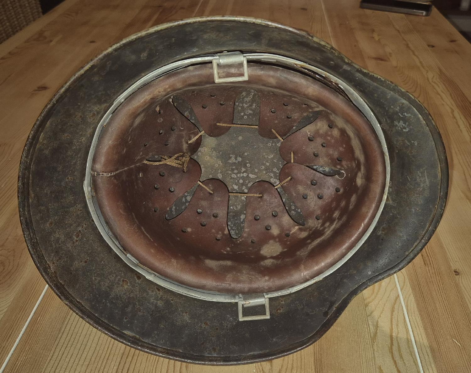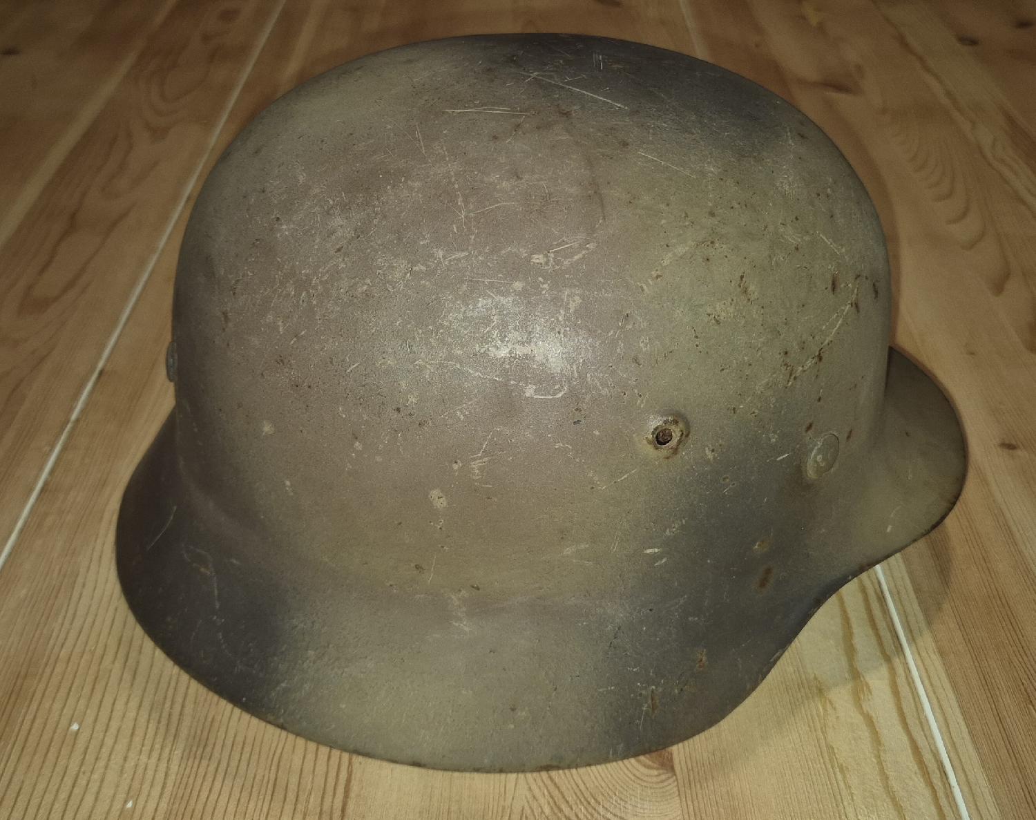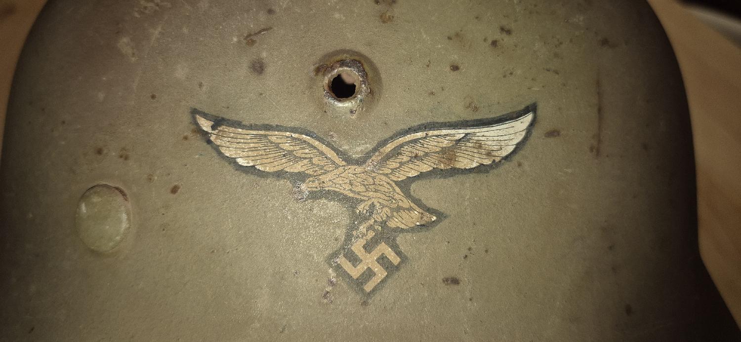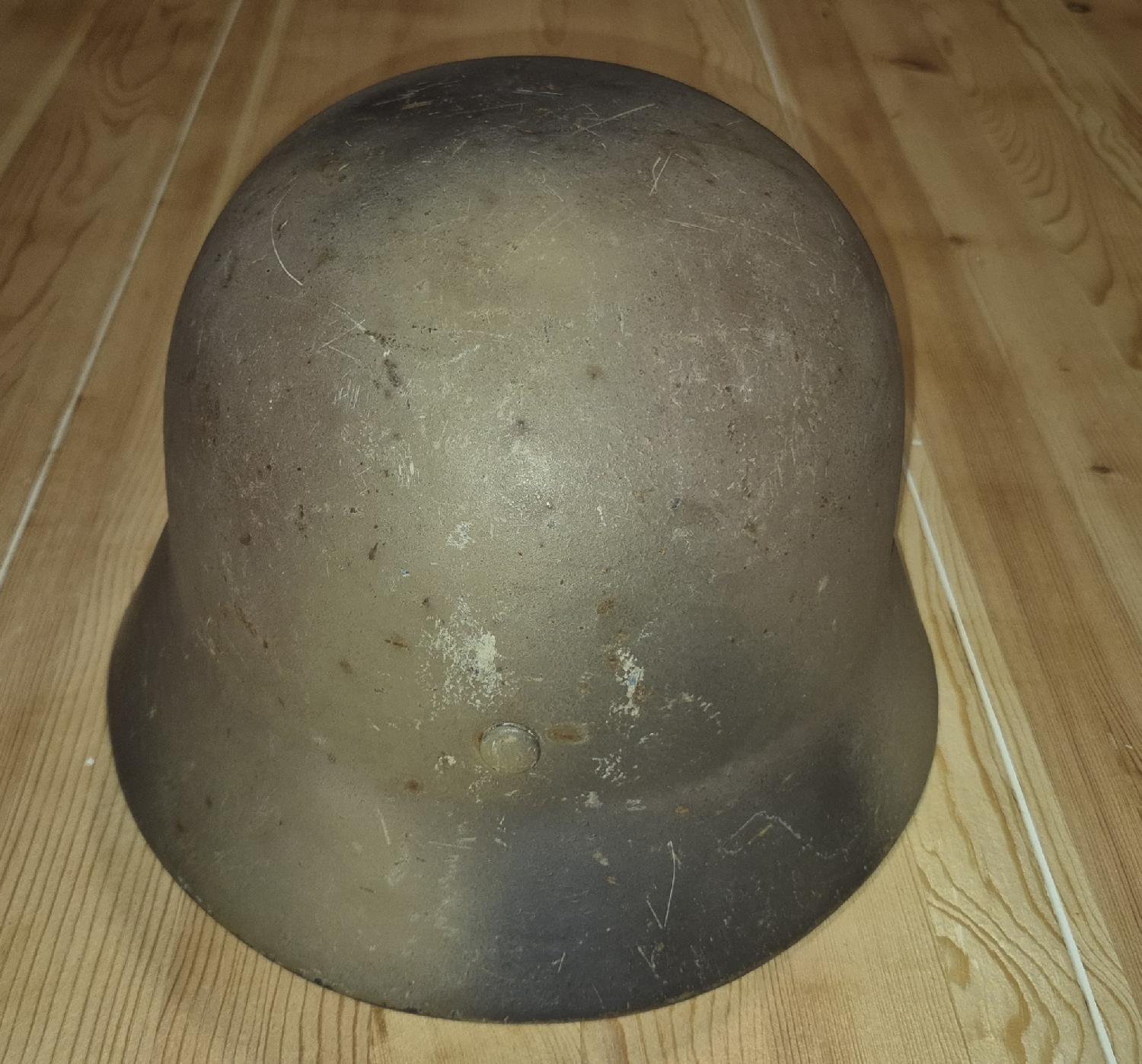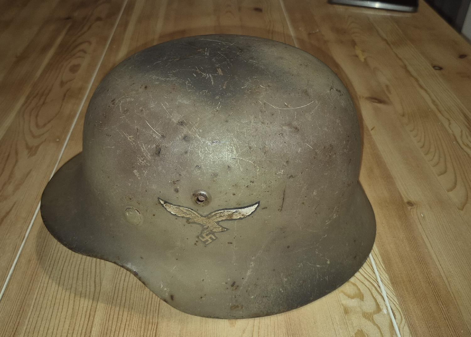 Casque mod 40 LW camouflé 3 tons. Fabrication Hkp. Taille bombe 64 et coiffe 57. Events coniques. Aigle second type à 95% détouré minutieusement.