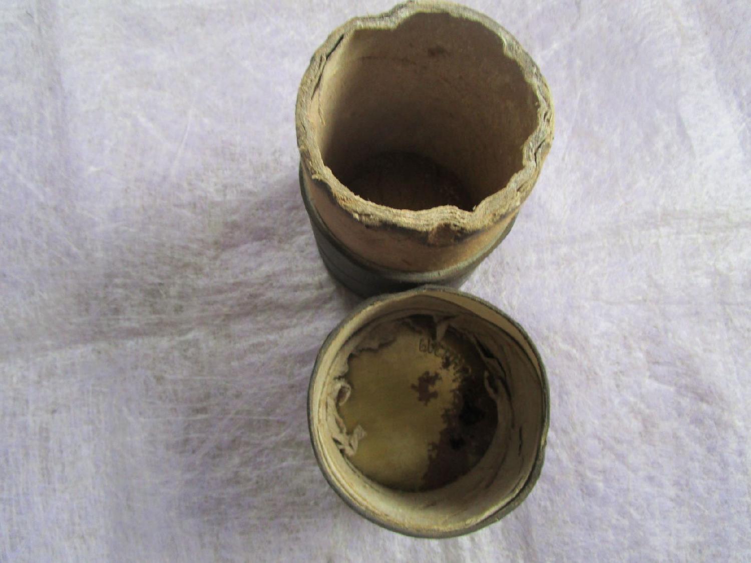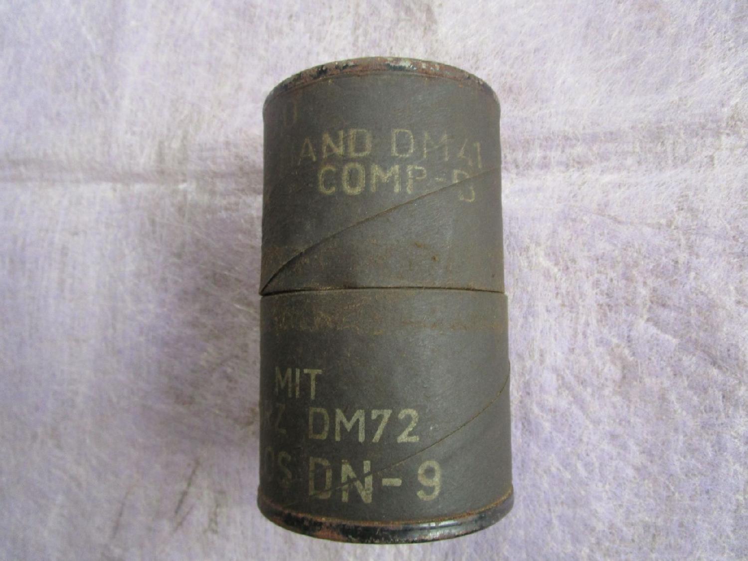Container pour grenade DM 41 US utilisée en Corée et au Vietnam. Fabrication allemande des années 60.Un coté oxydé, l'autre en TBE. Photos sur demande. Prévoir 8.65 en colissimo ou 4.50 euros par mondial relay.