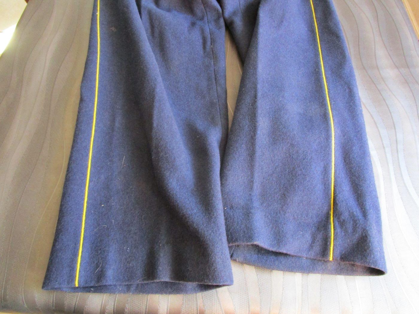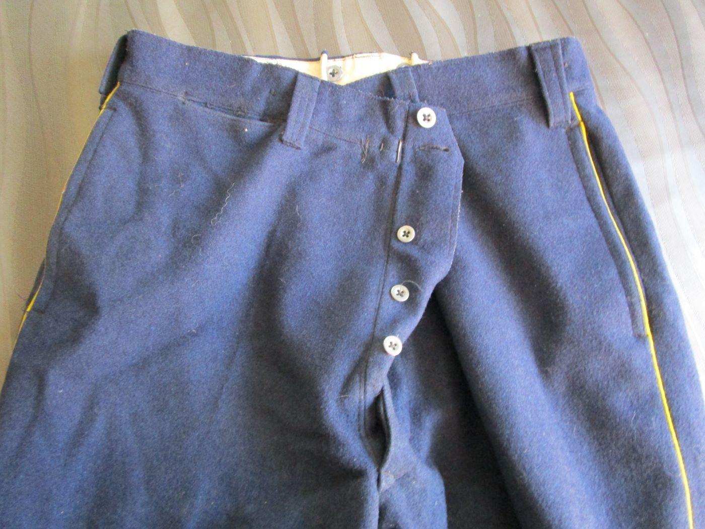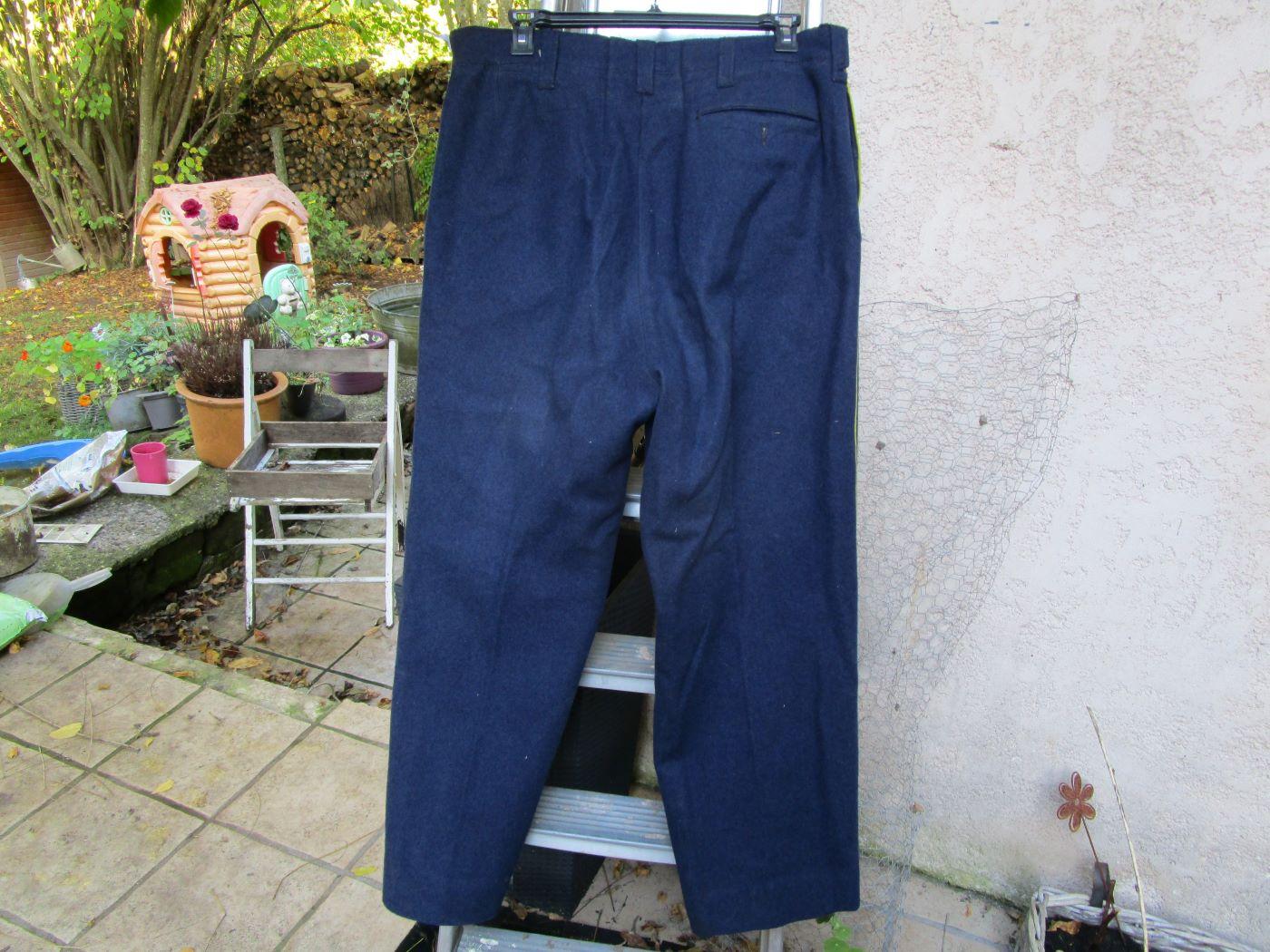 Pantalon en drap bleu des eaux et forêts avec passepoil jonquille, idem que le modèle chasseur à quelques détails prêt. Poche à gousset, boutons cuvette, tampon du fabricant et daté 47. Taille 48, longueur totale 1.08m. Idéal en attendant un bon modèle de chasseur ou pour la reconstitution. Prévoir 10.70 euros en colissimo ou 7 euros par mondial relay. Autres photos sur demande.