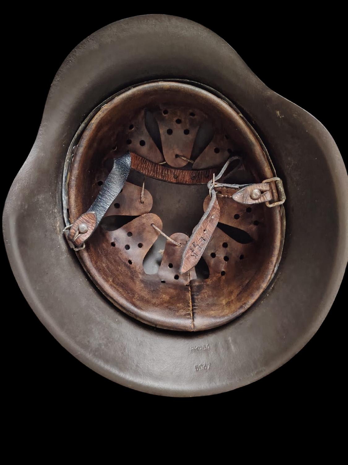 l’intérieur du casque est en très bon état général, le cuir est souple. Jugulaire d’origine en cuir est présente , marquage EEK 1943