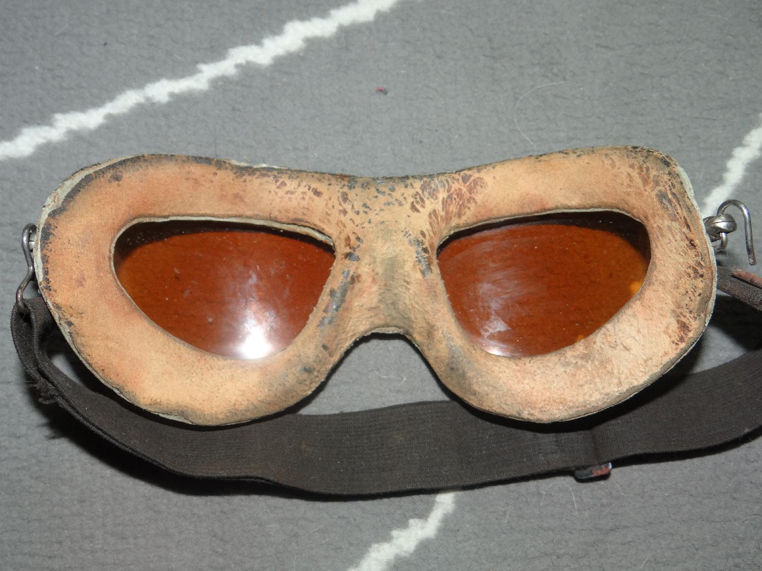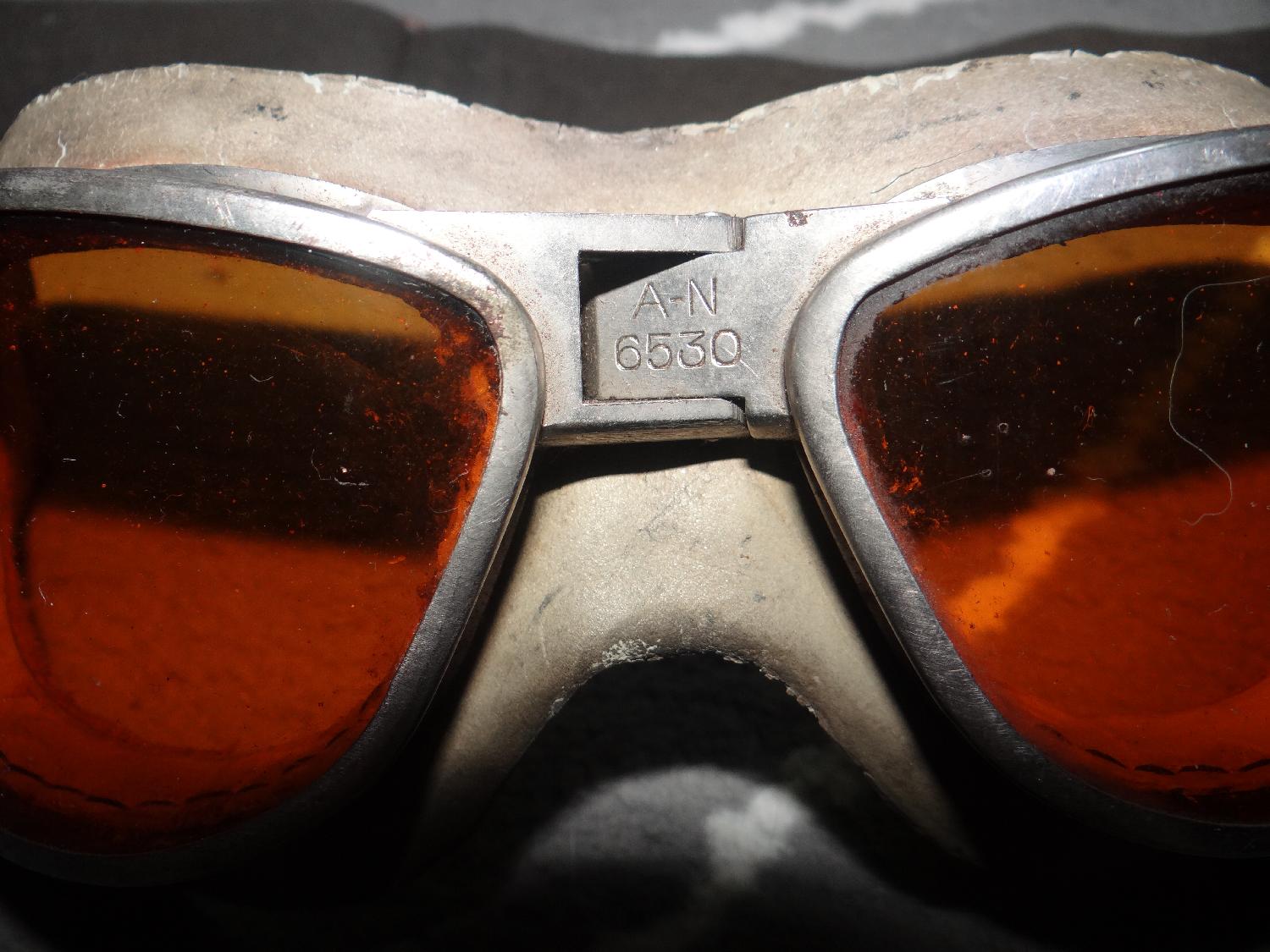 Lunettes de vol USAAF 6530 réglementaires, verres oranges (=précoces). Pas de fragilité, élastique bien souple. Superbe pièce en superbe état !