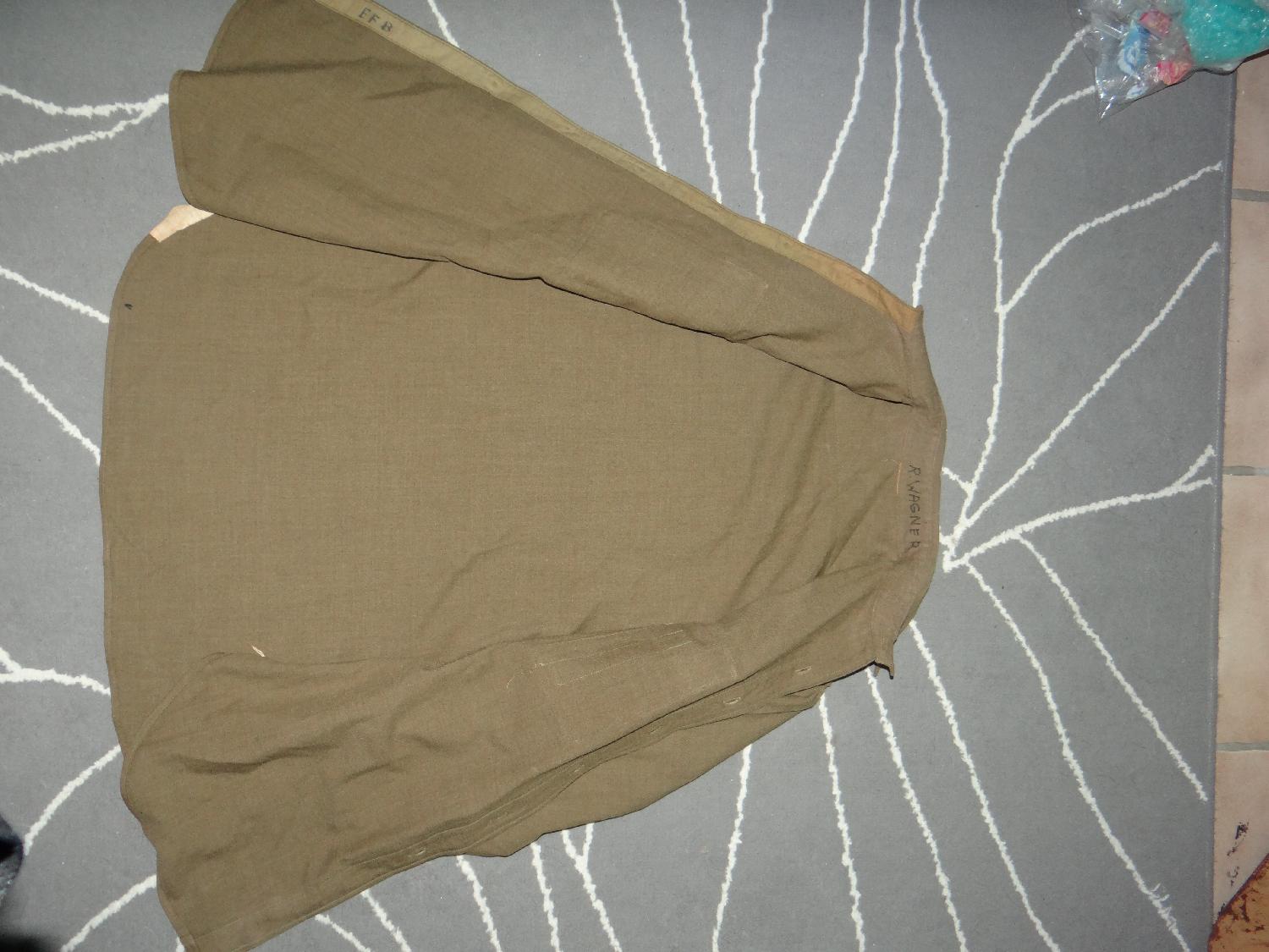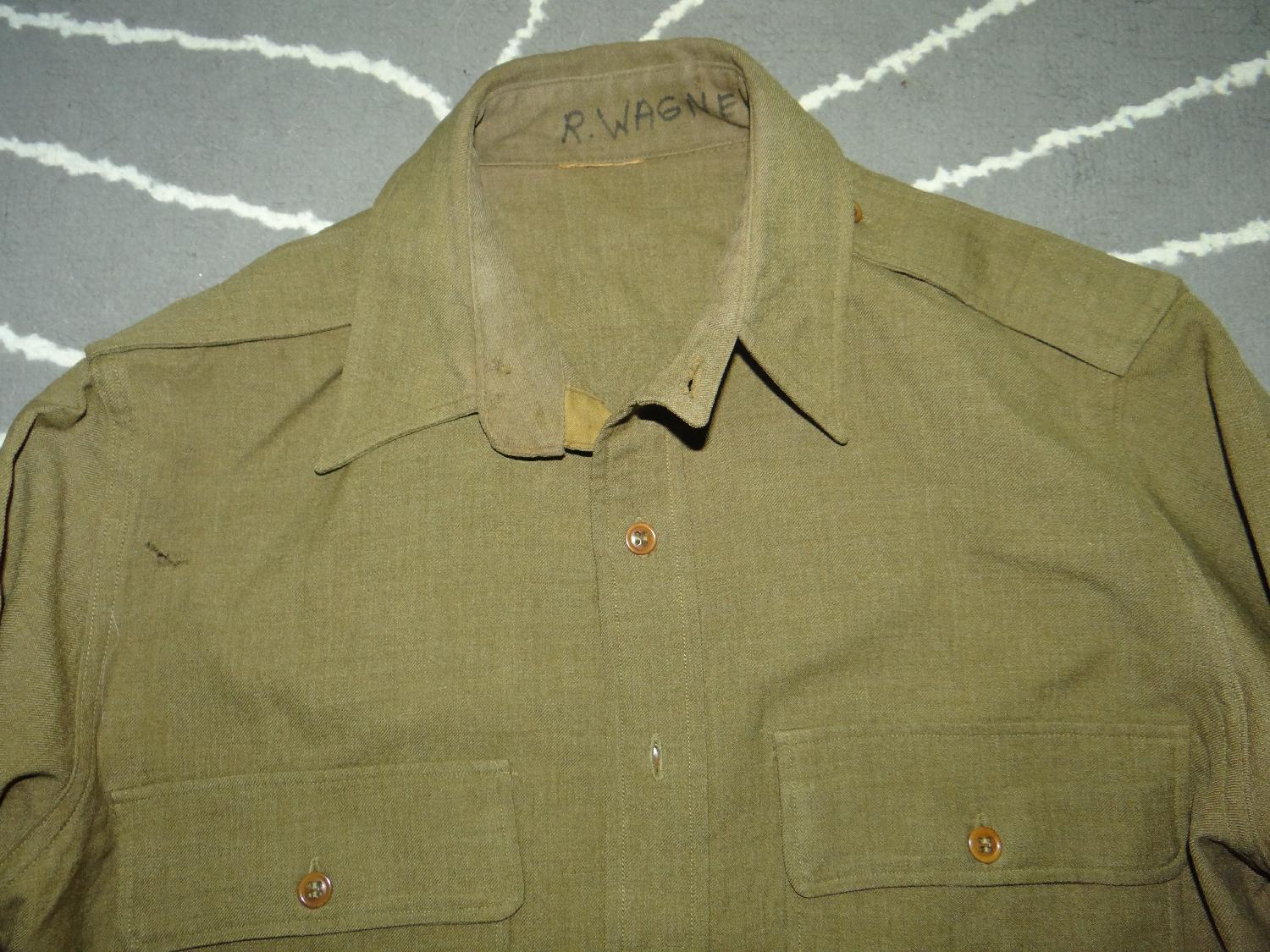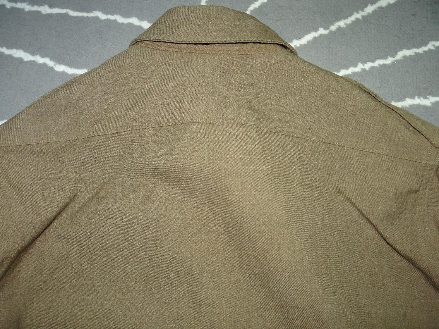 Chemise moutarde pour officier US WW2, bonne taille mannequin vers 14 1/2 32. Un petit trou sous l'aisselle droite, sinon rien à redire, étiquette présente mais illisible.