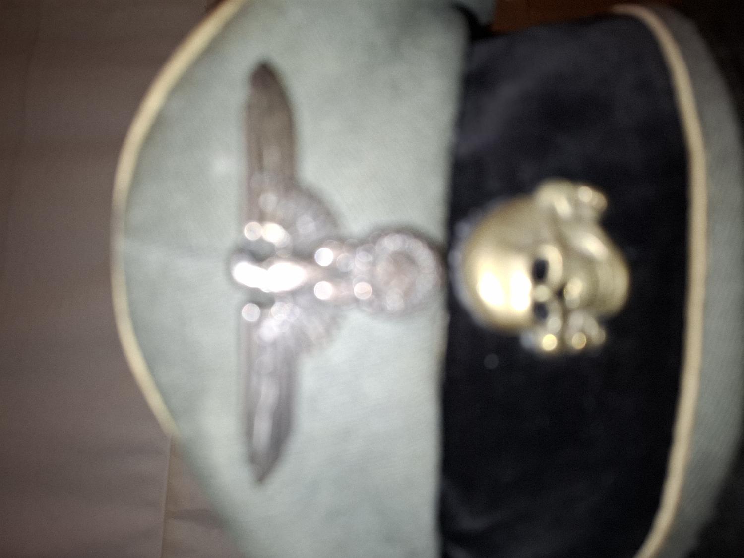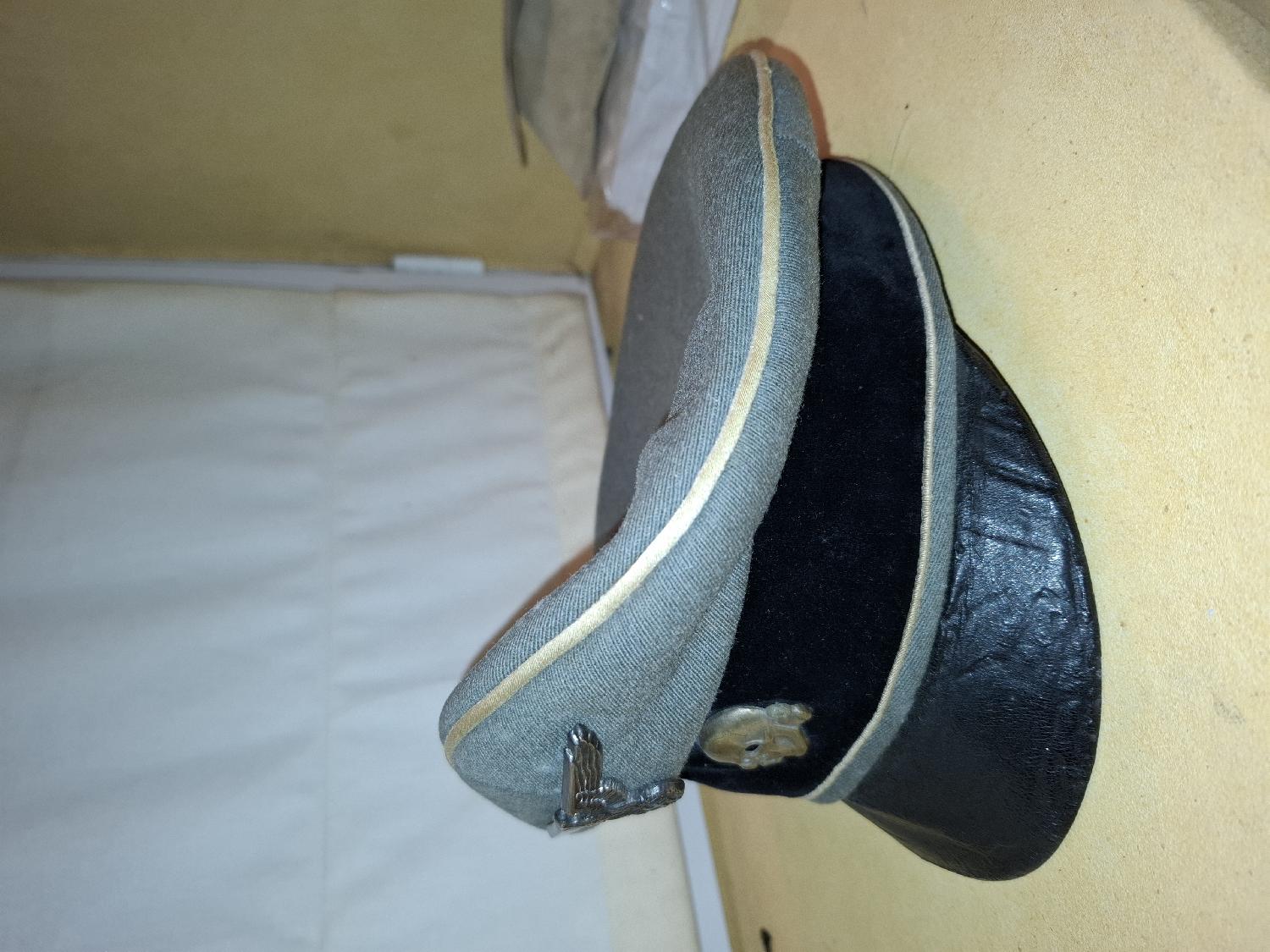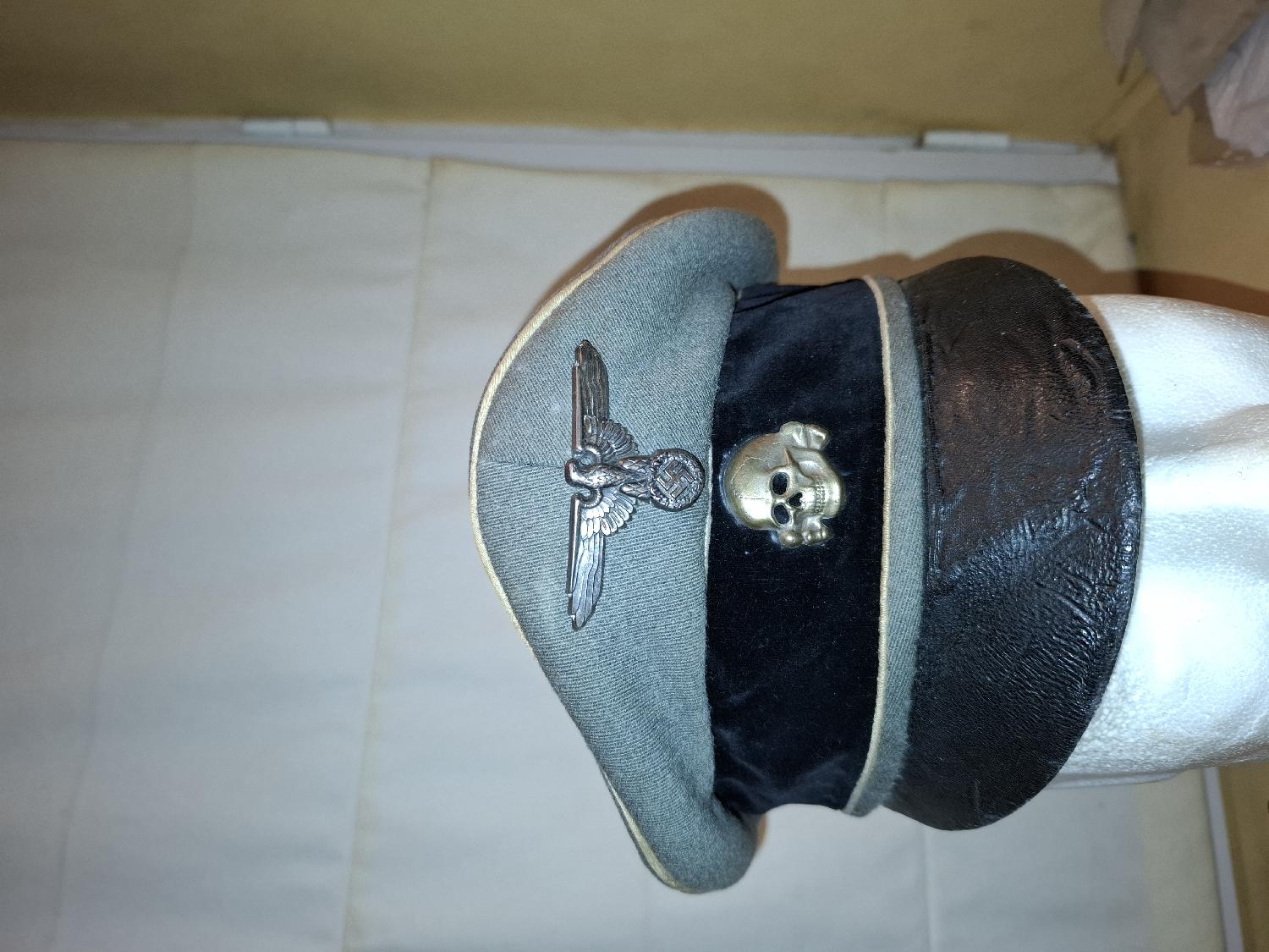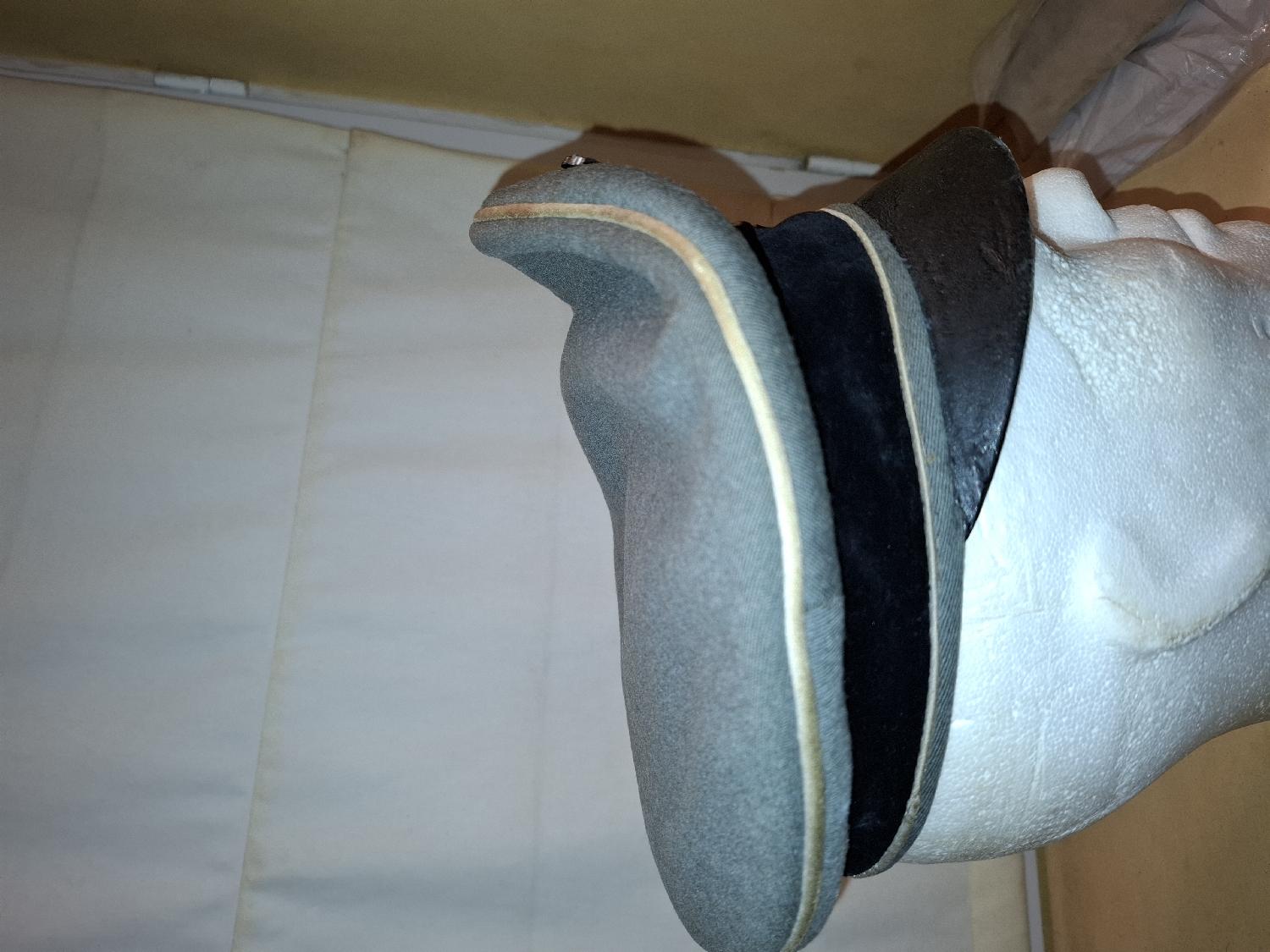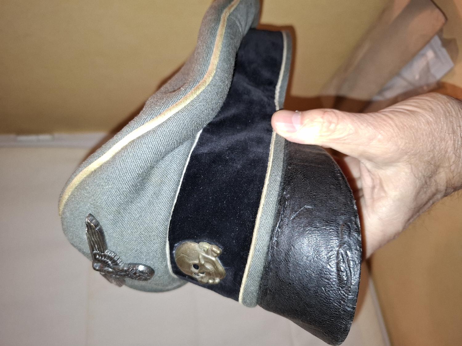 Casquette d'officier waffen SS de confection souple dite alter art réalisée en tissu de gabardine, visière cuir